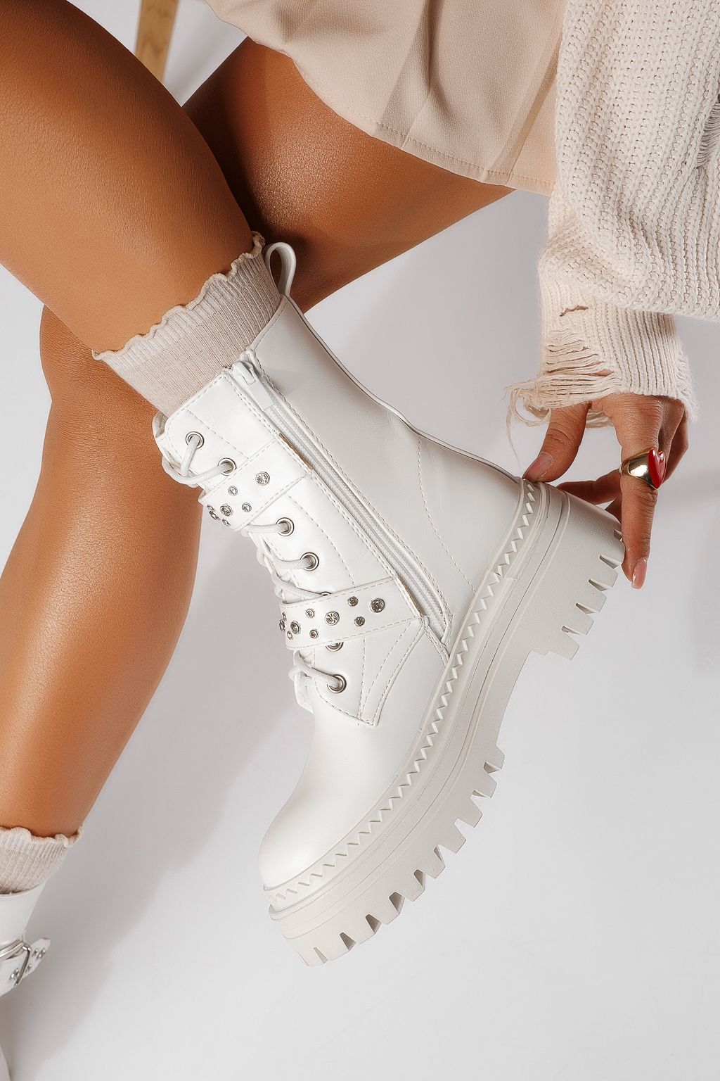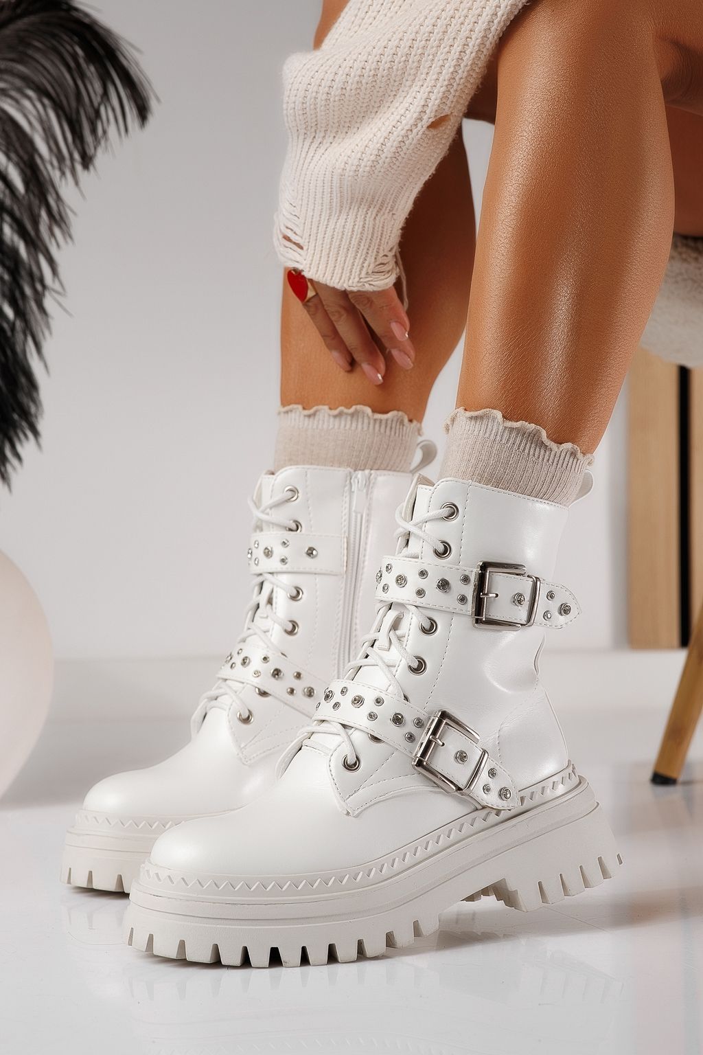 Prima pagină Incaltaminte dama Ghete dama Ghete de toamna Ghete dama captusite albe din piele ecologica Sofia #22953