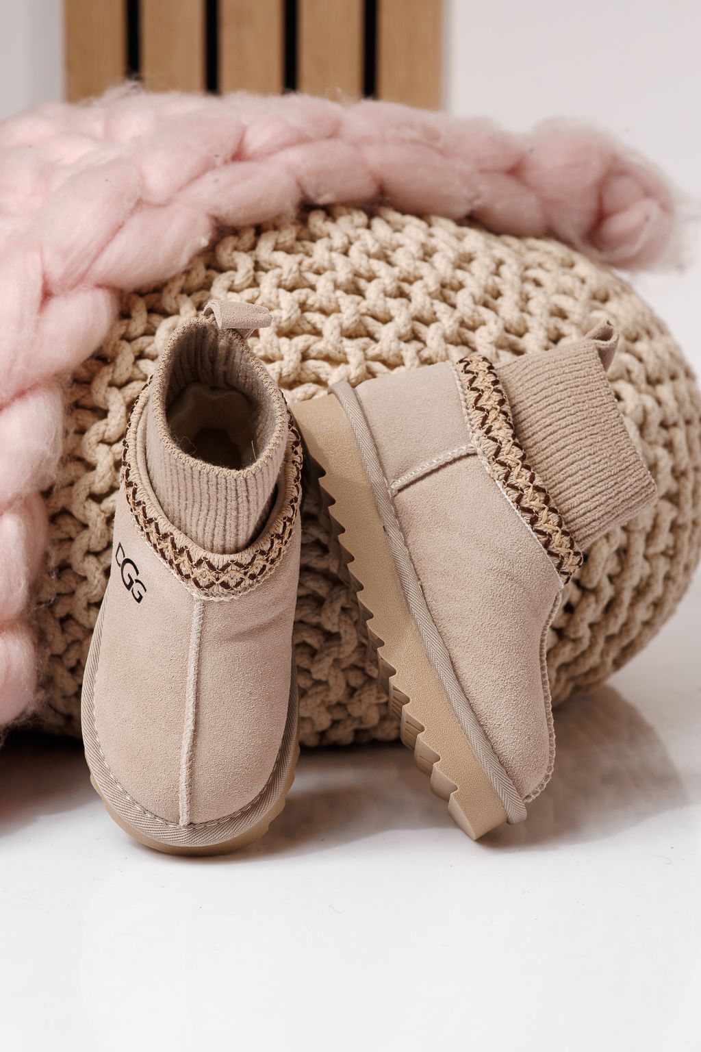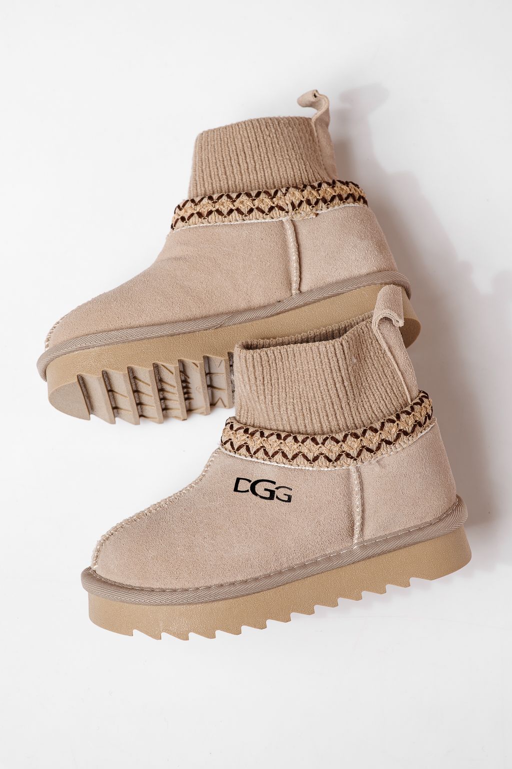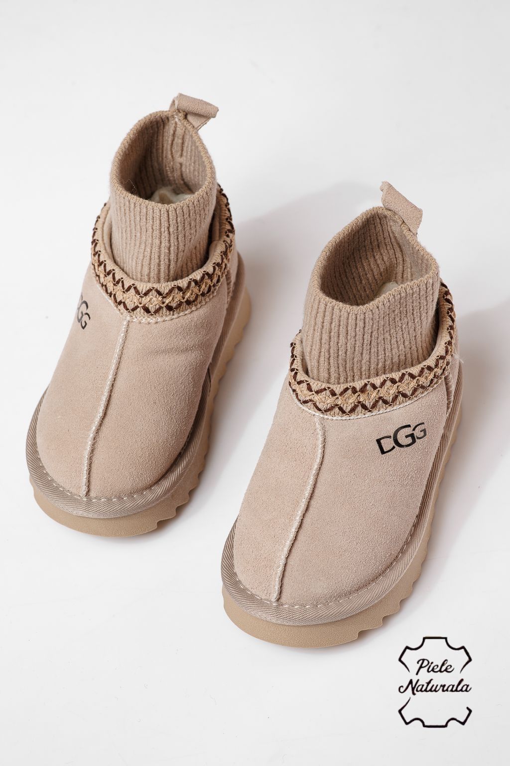 Ghete fete îmblanite bej din piele naturala intoarsa Carla #22960