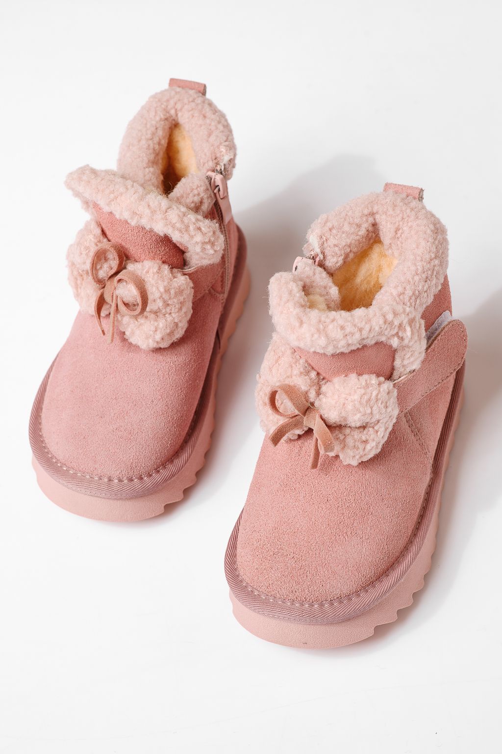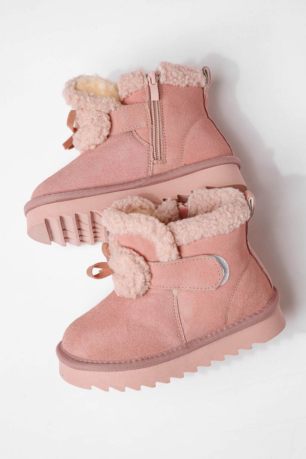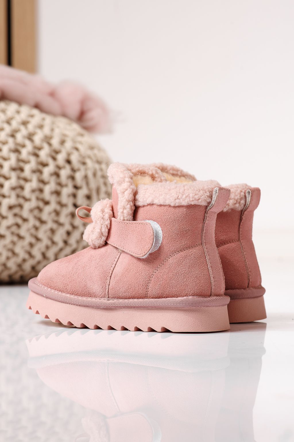 Ghete fete îmblanite roz din piele naturala intoarsa Pixie #22966