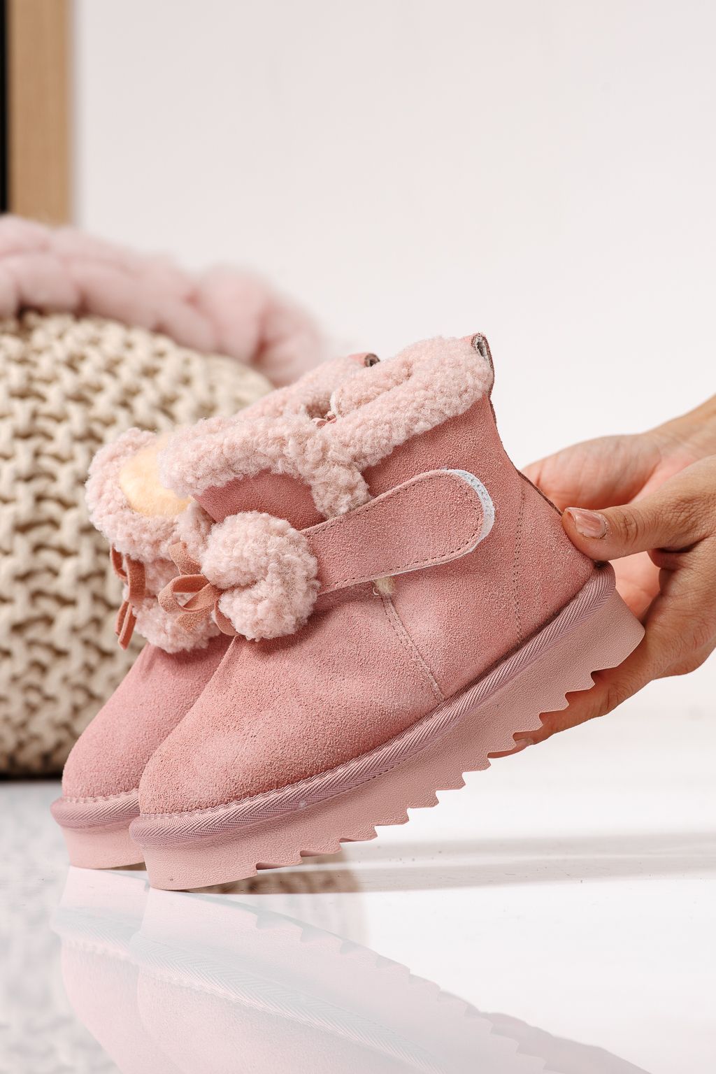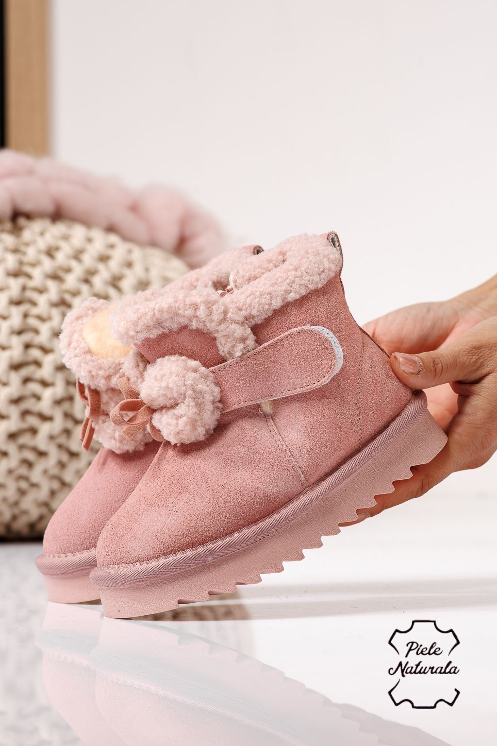 Prima pagină Incaltaminte dama Incaltaminte Copii Ghete copii Ghete fete îmblanite roz din piele naturala intoarsa Pixie #22966