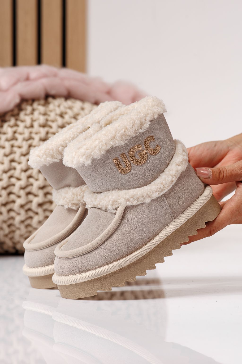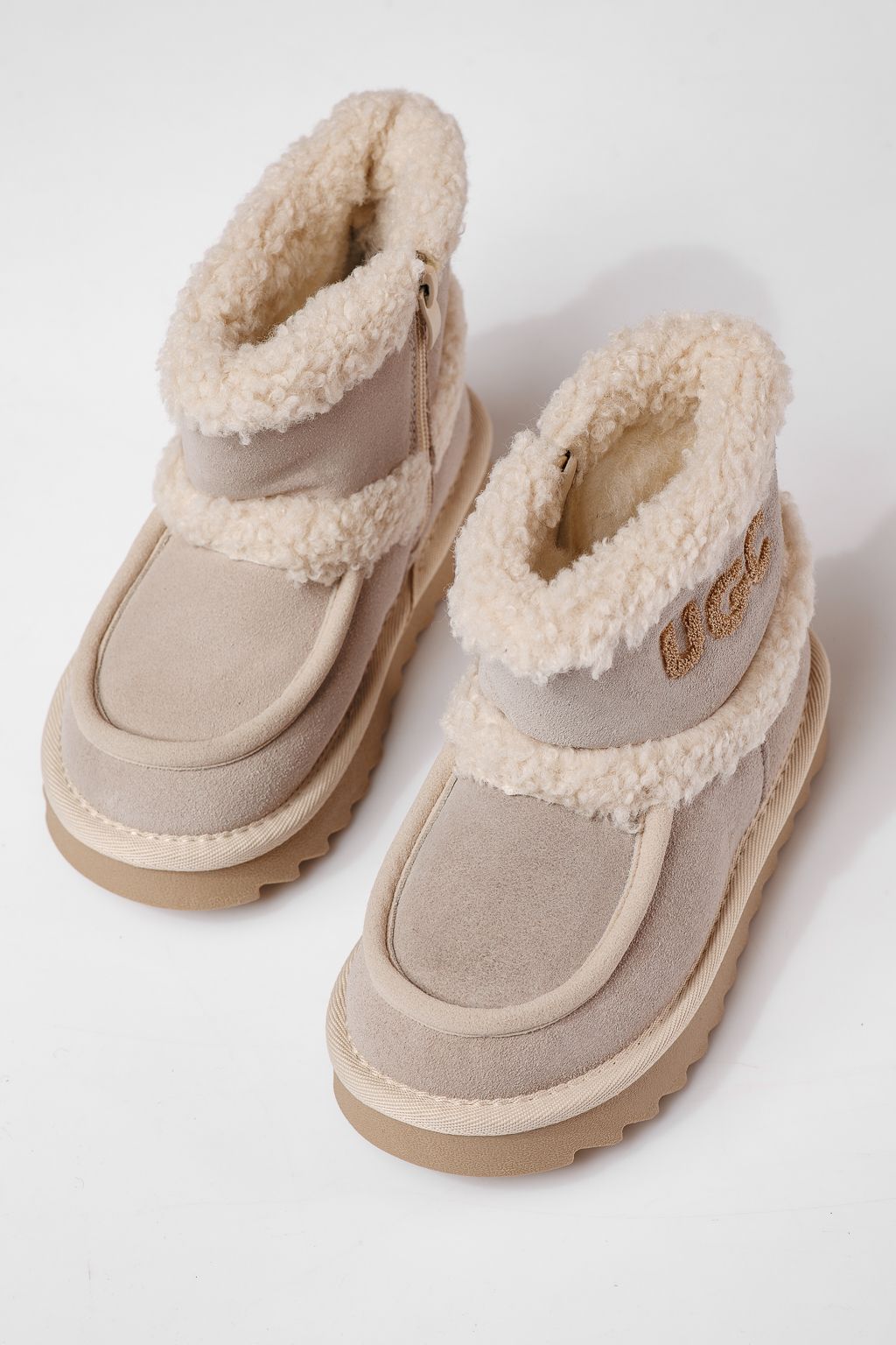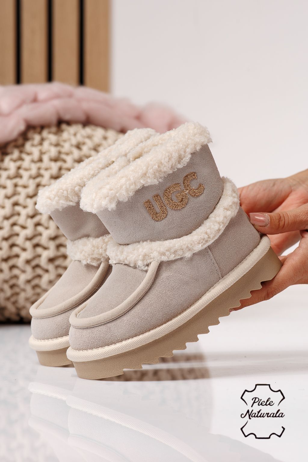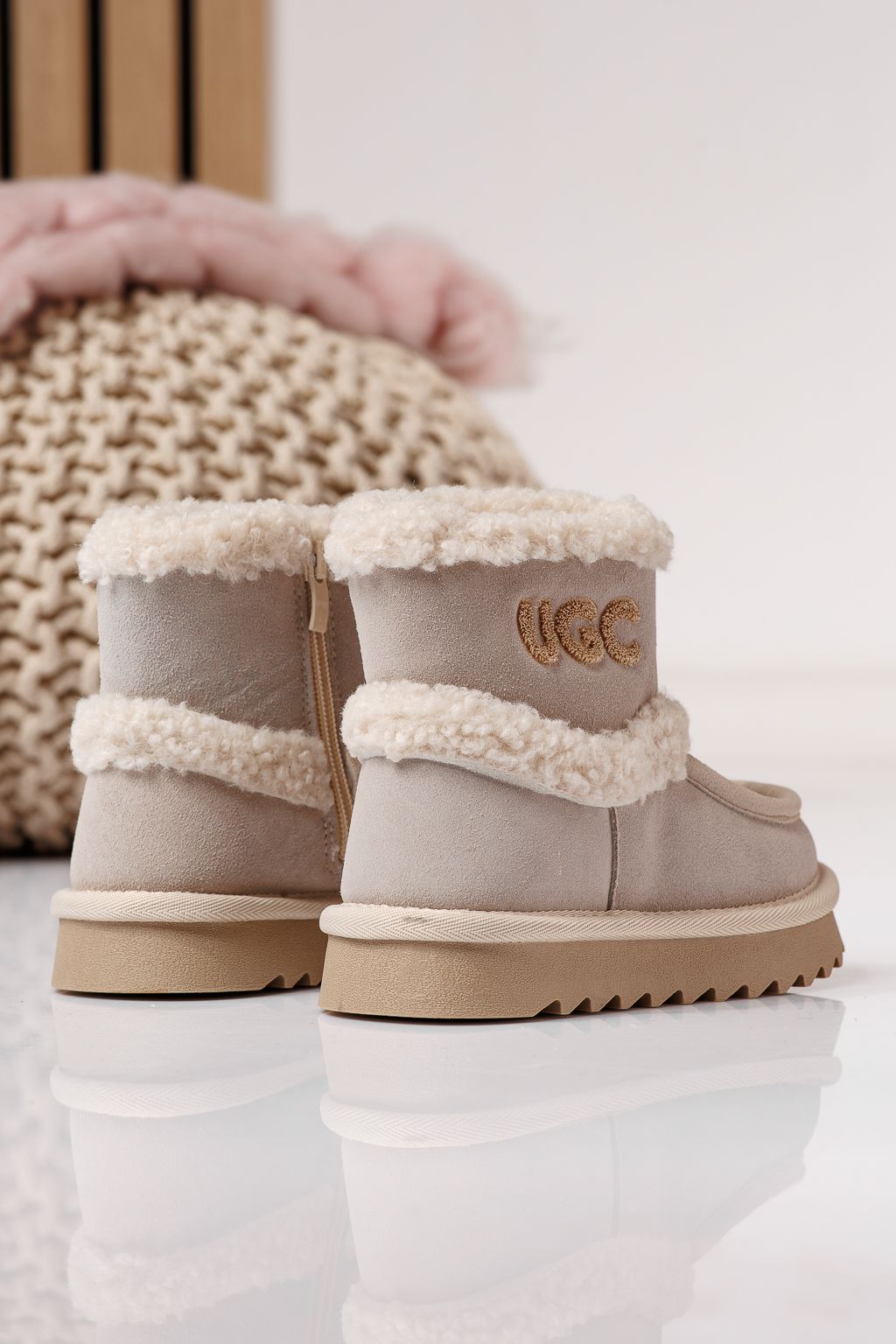 Ghete fete îmblanite bej din piele naturala intoarsa Talia #22974