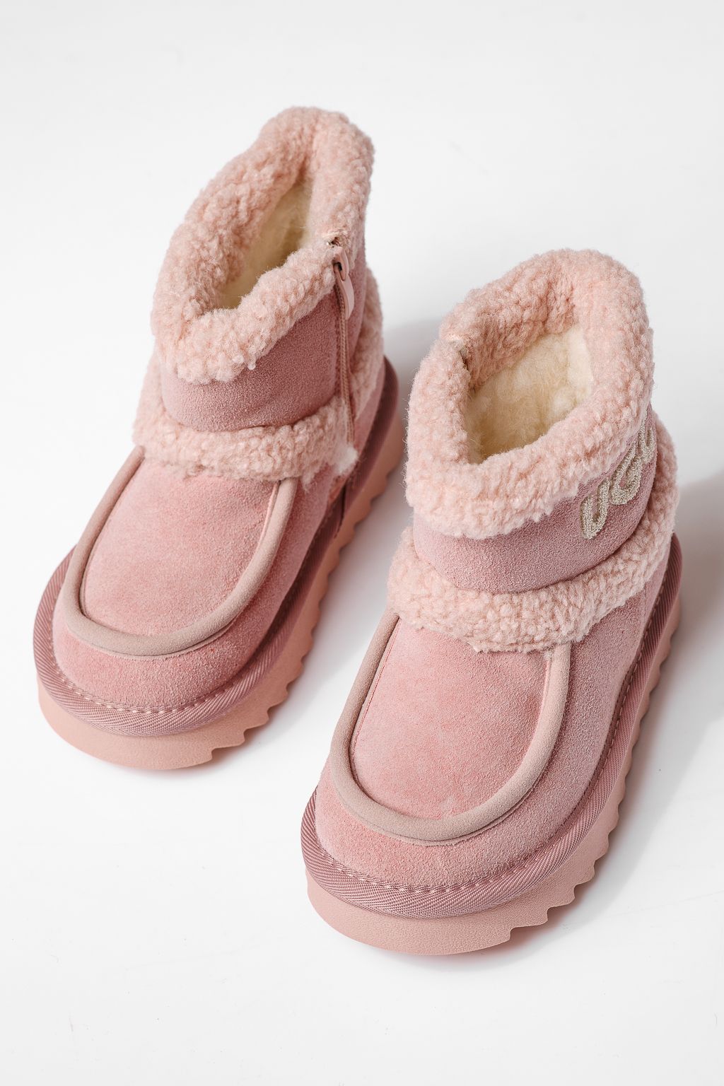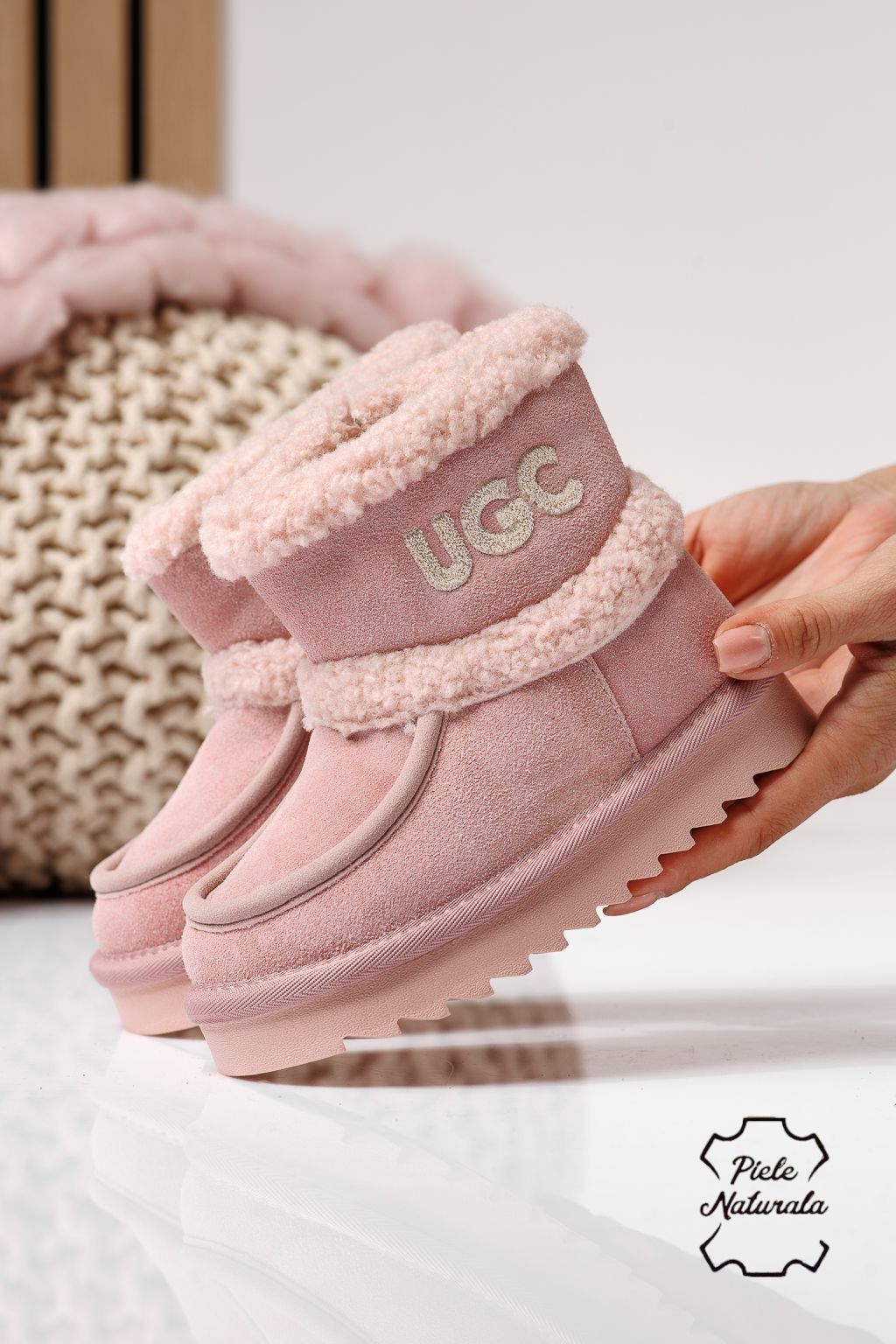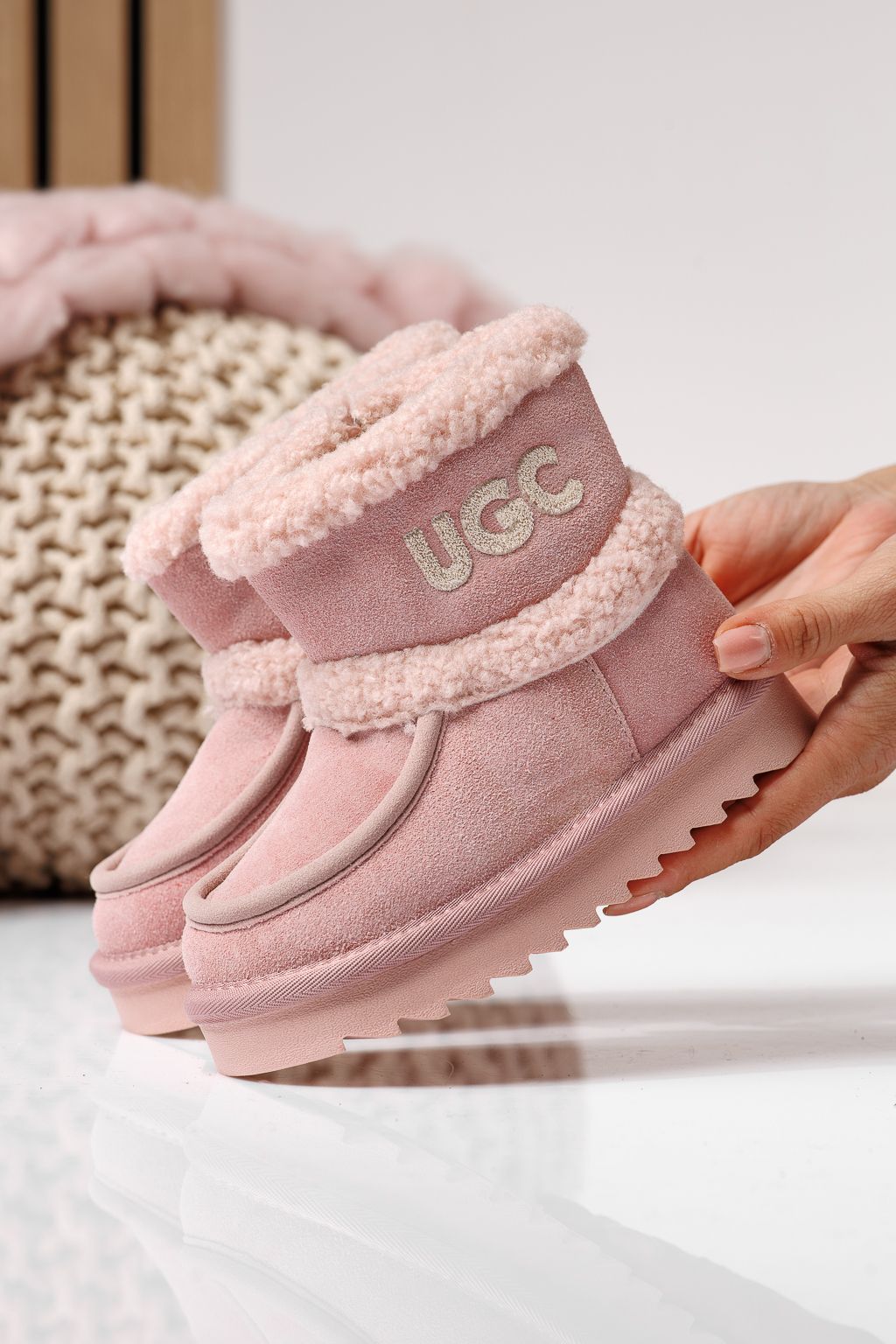 Ghete fete îmblanite roz din piele naturala intoarsa Talia #22976