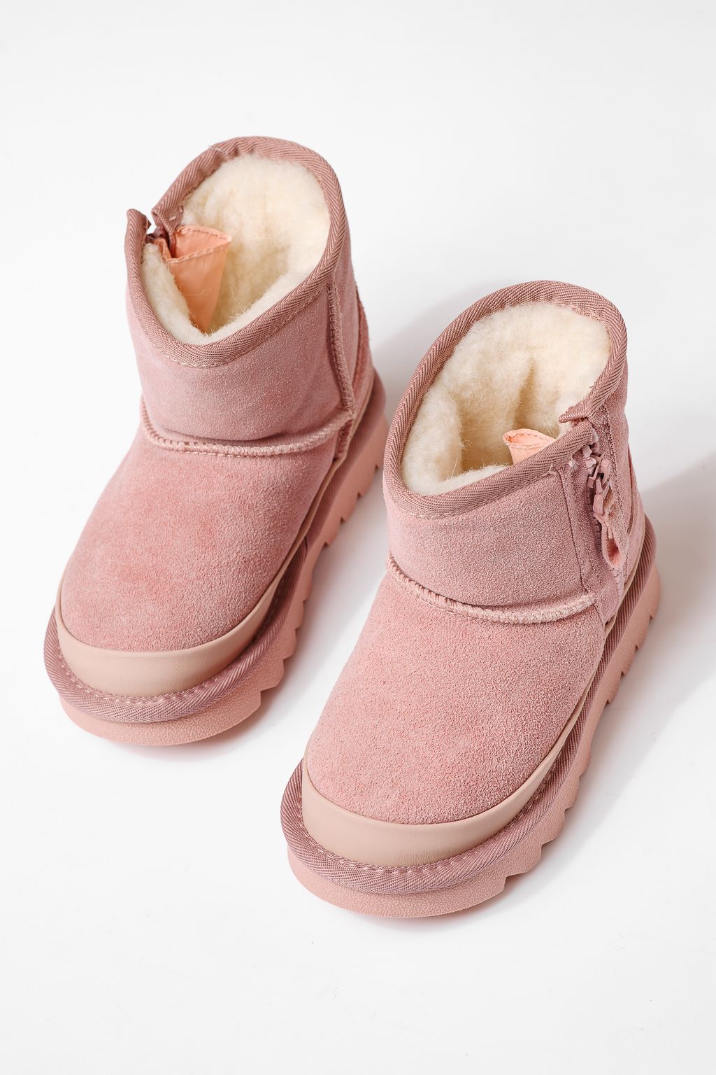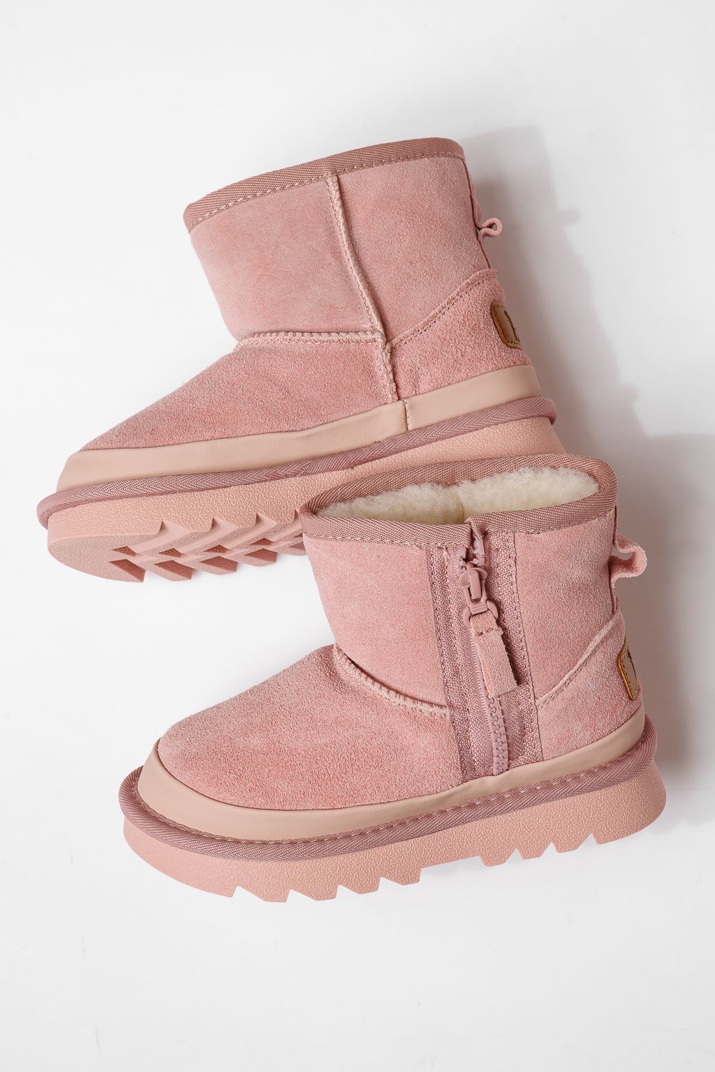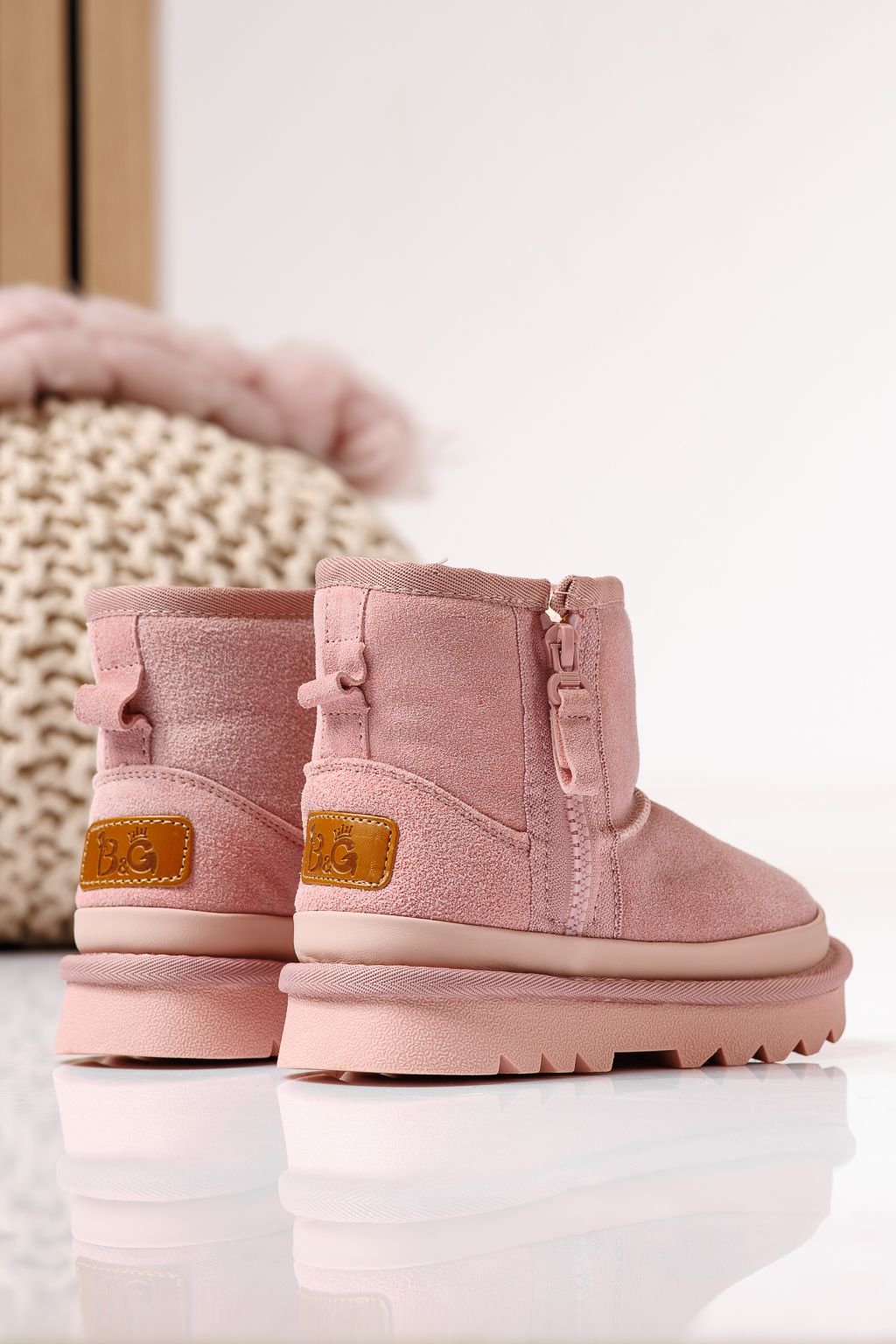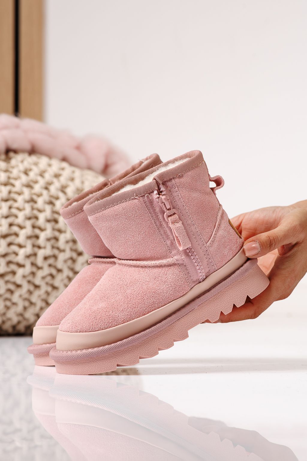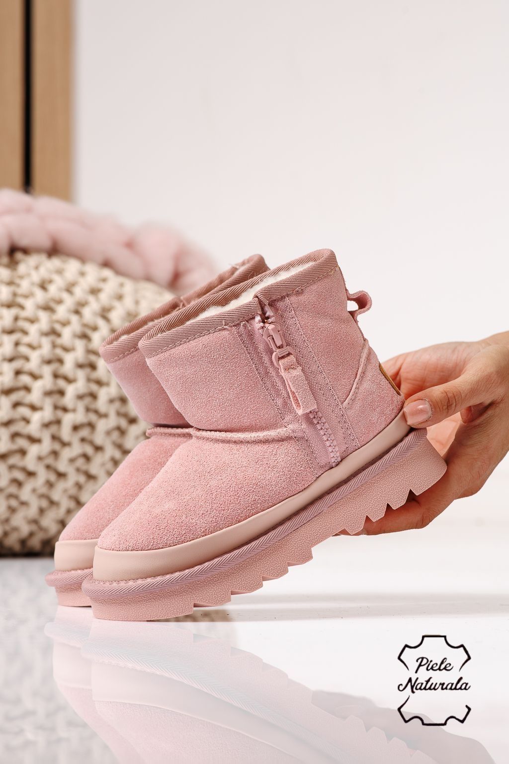 Ghete fete îmblanite roz din piele naturala intoarsa Anya #22978
