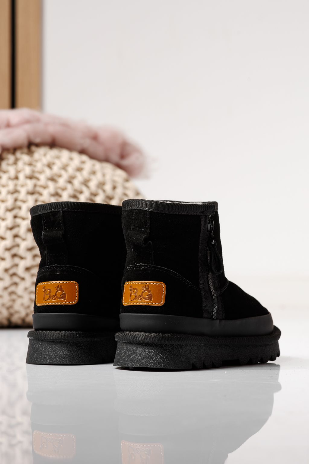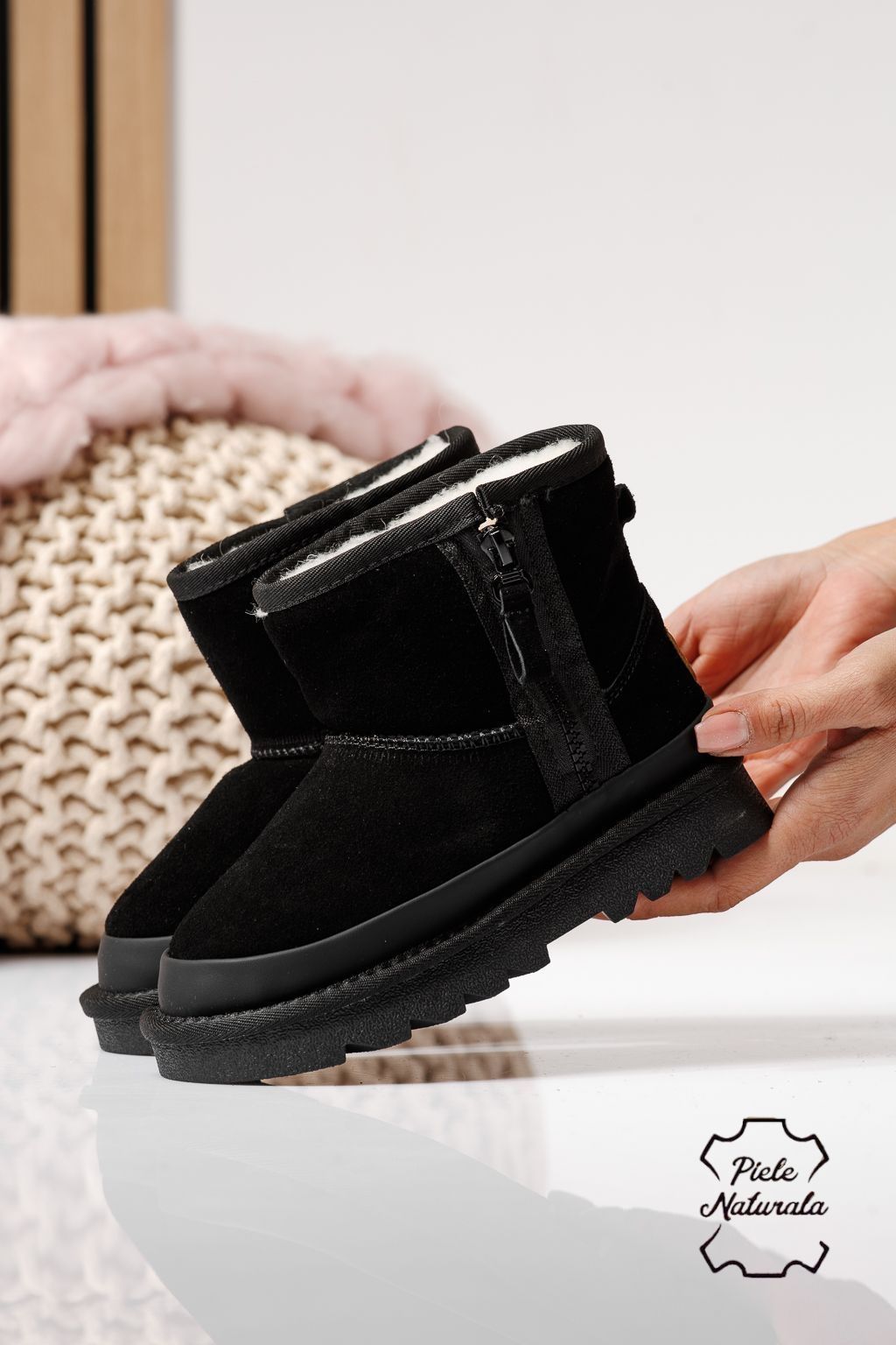 Ghete fete îmblanite negre din piele naturala intoarsa Anya #22979