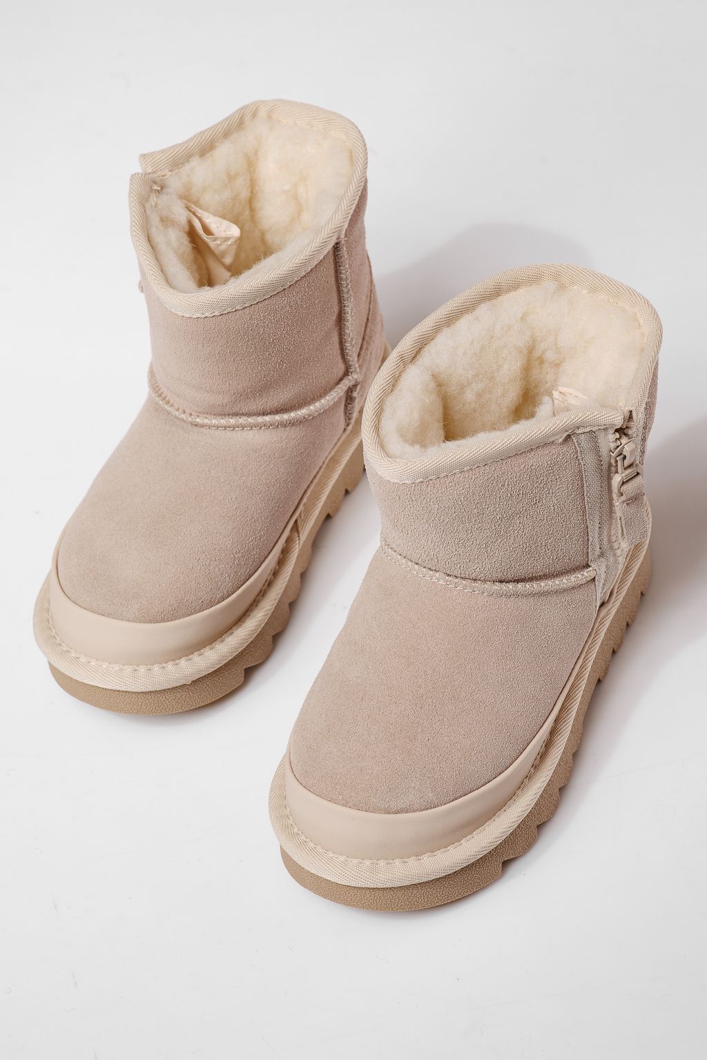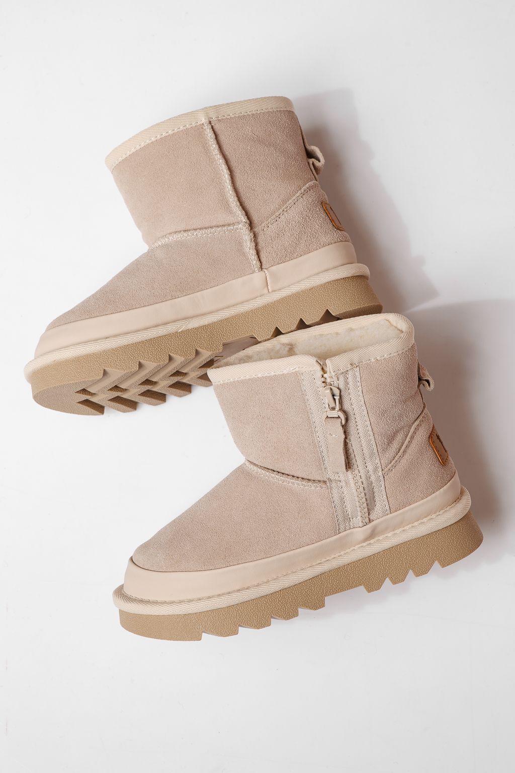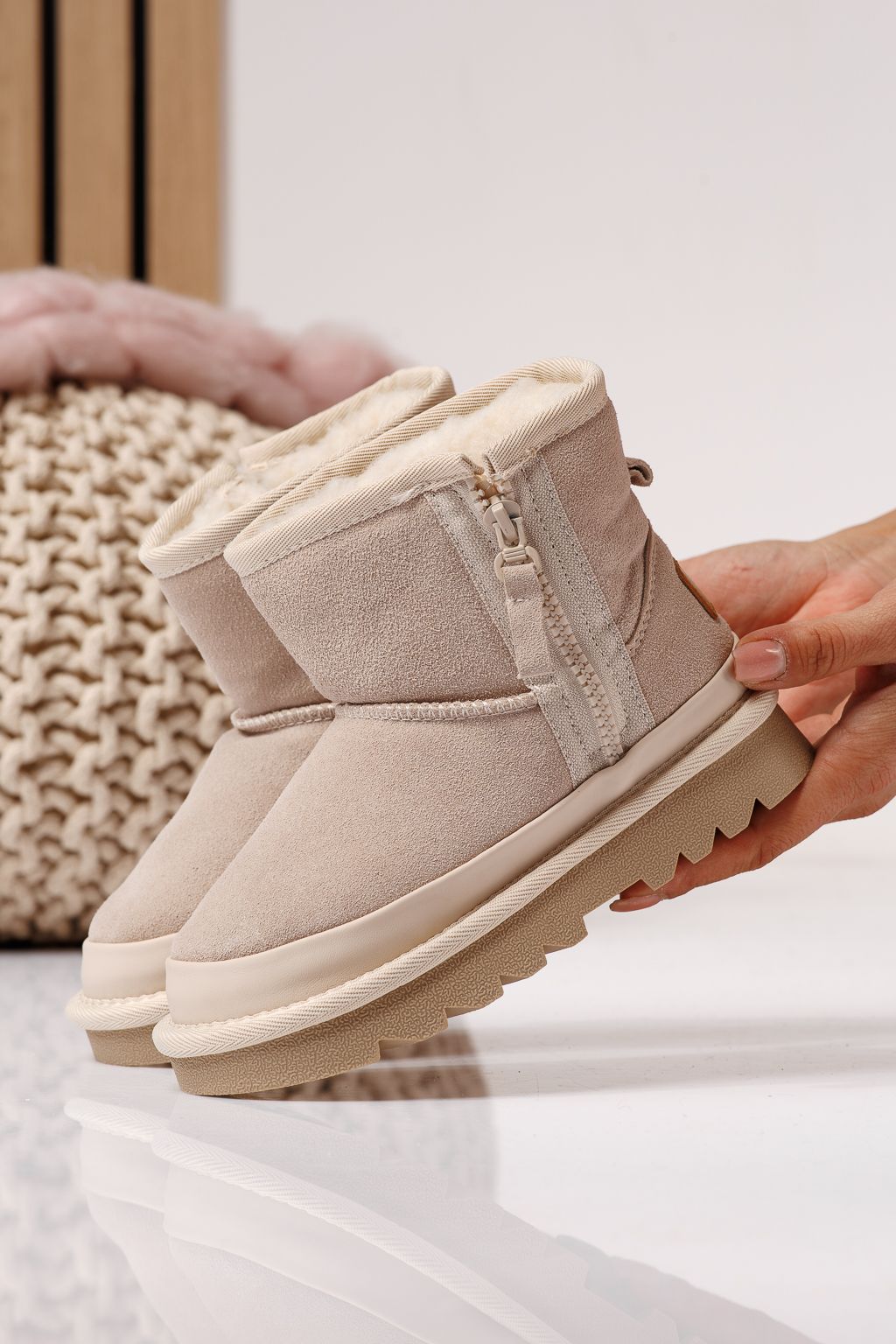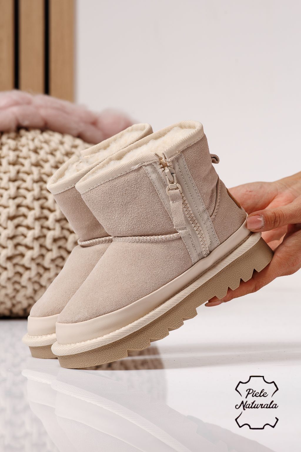 Ghete fete îmblanite bej din piele naturala intoarsa Anya #22980