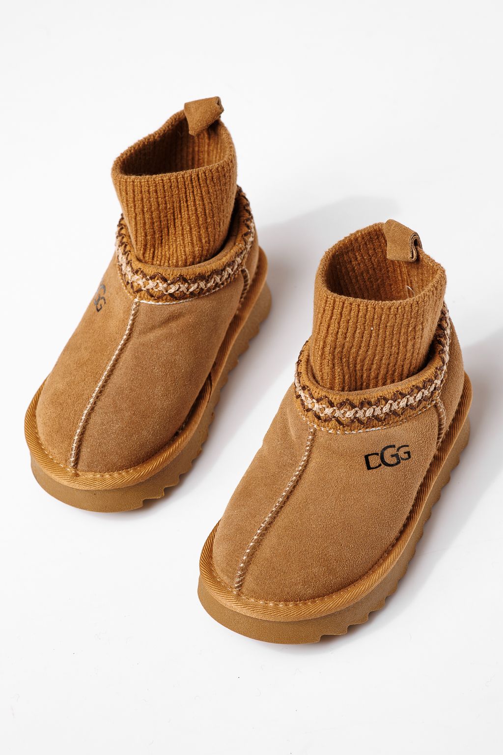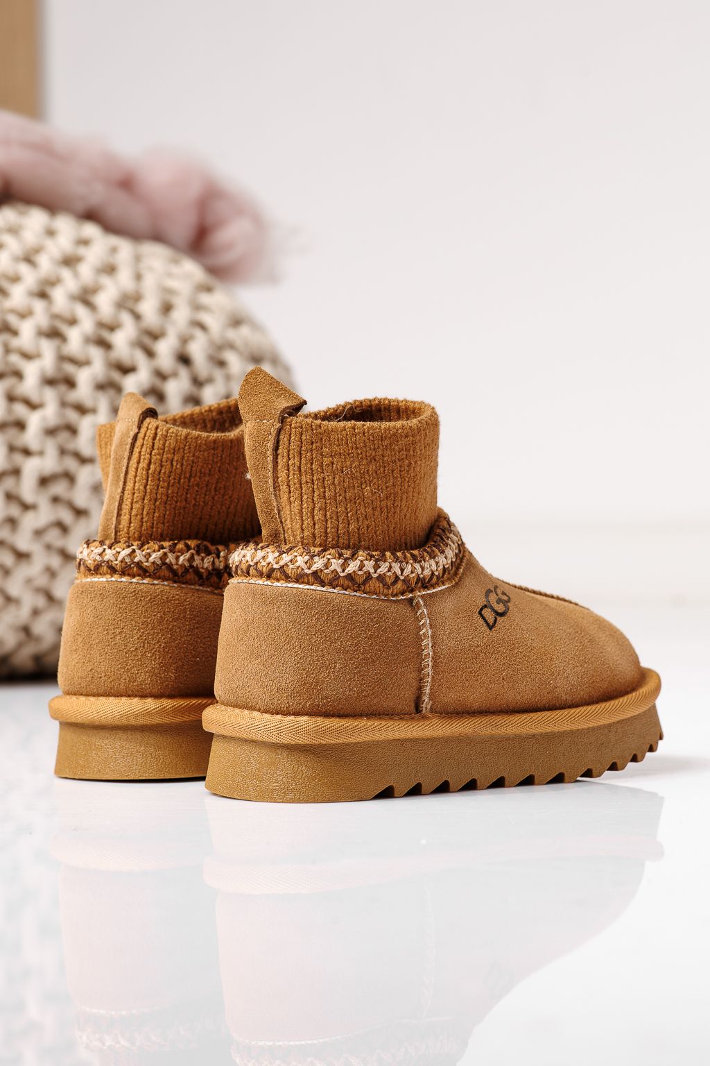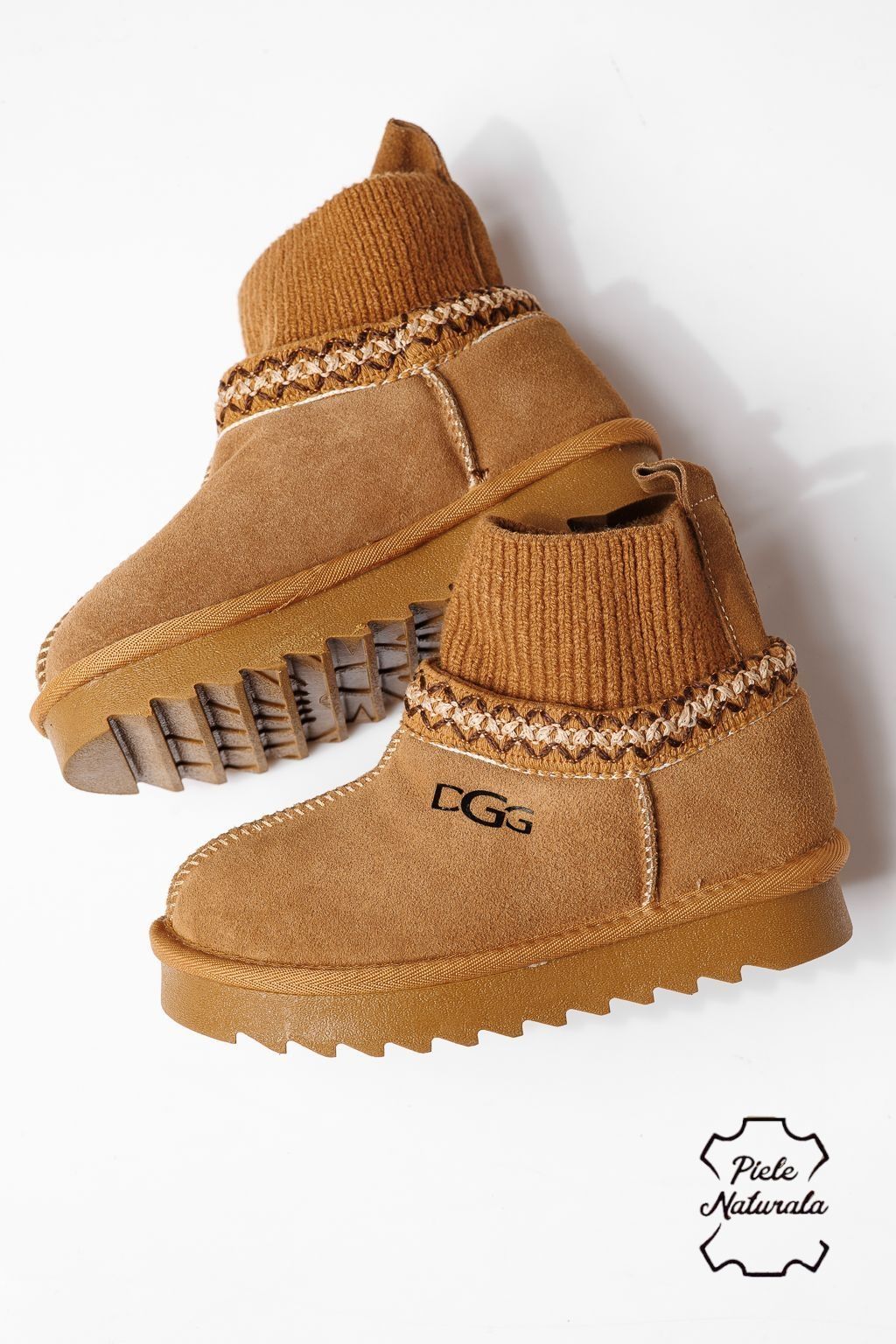 Ghete fete îmblanite maro din piele naturala intoarsa Esfir #22985
