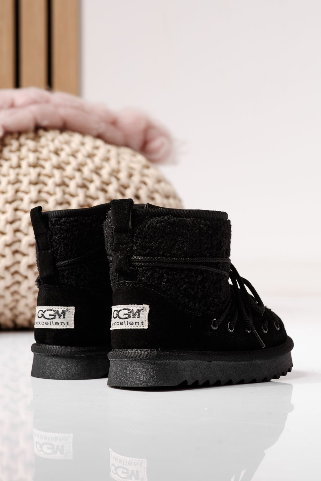 Ghete fete îmblanite negre din piele naturala intoarsa Raluca #22989