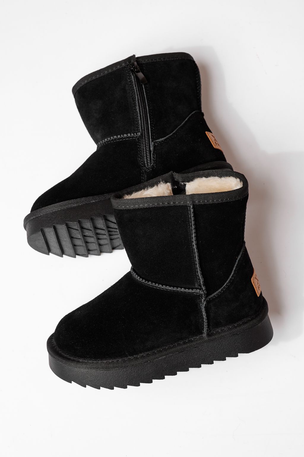 Ghete fete îmblanite negre din piele naturala intoarsa Flori #22998