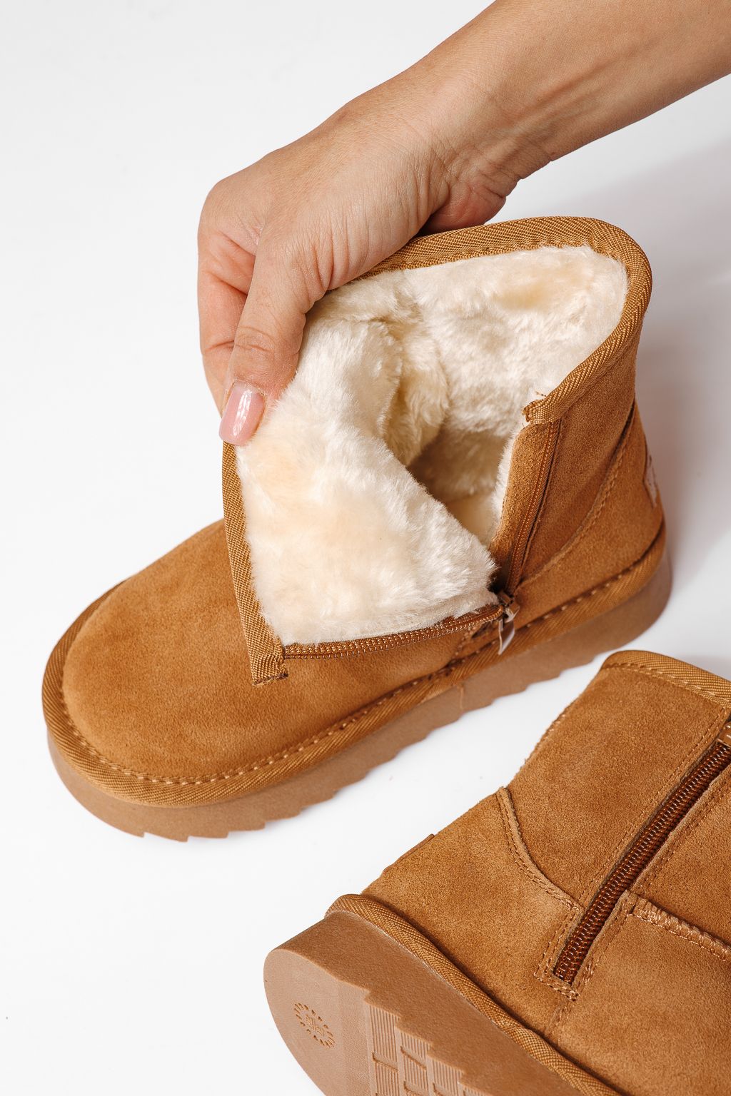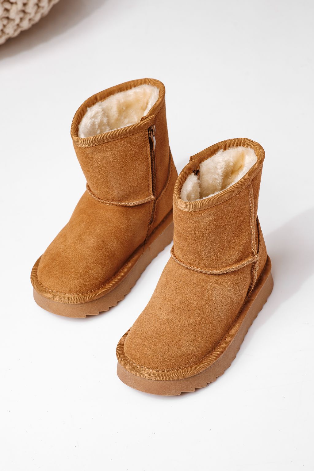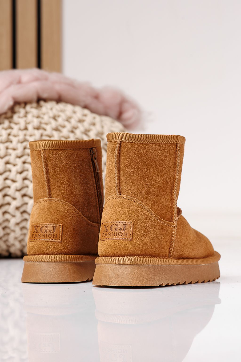 Ghete fete îmblanite maro din piele naturala intoarsa Flori #22999