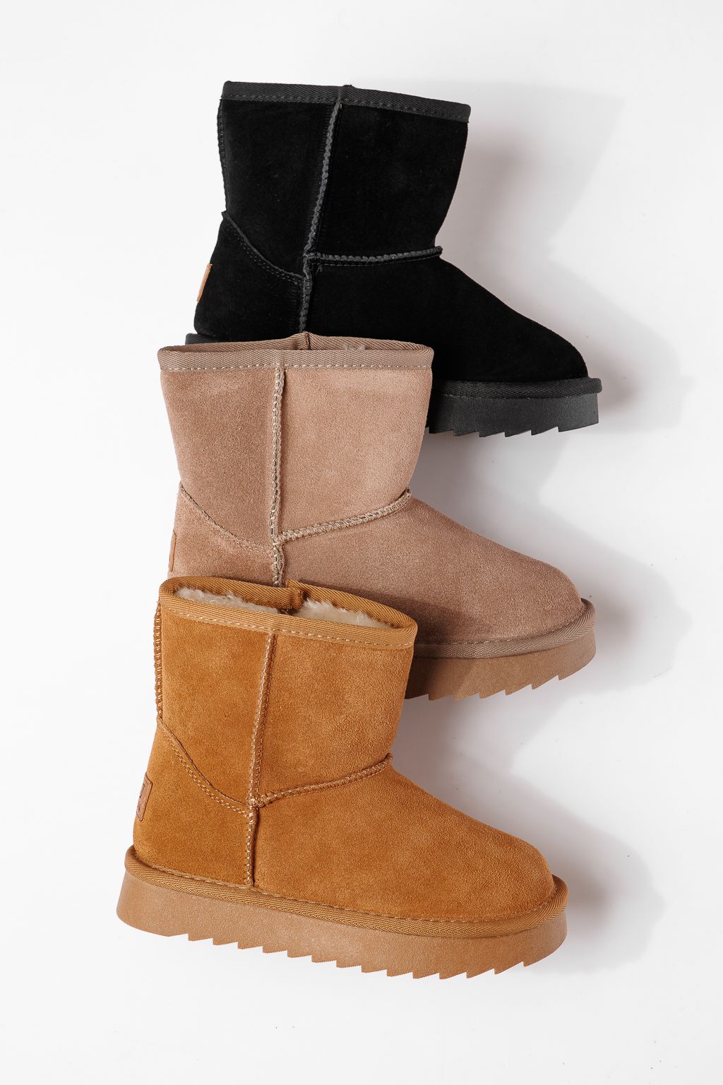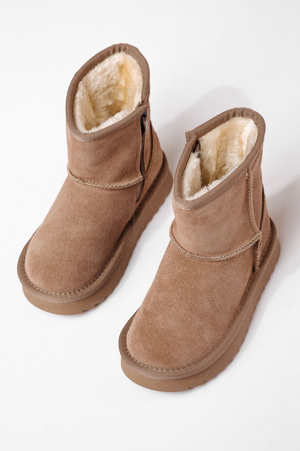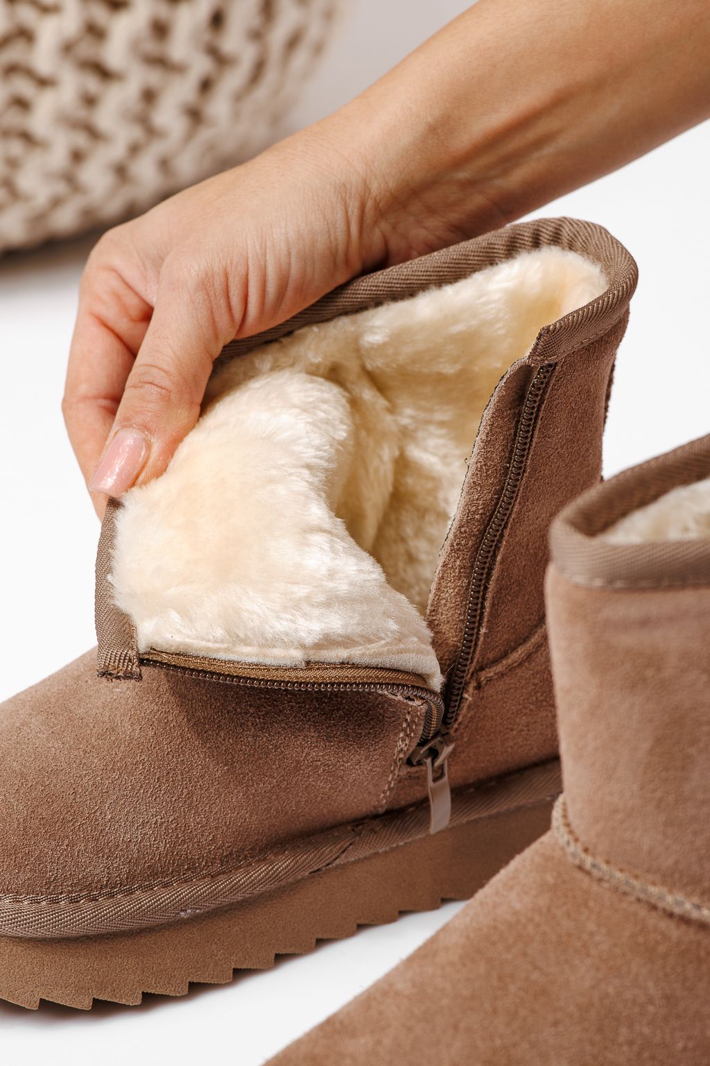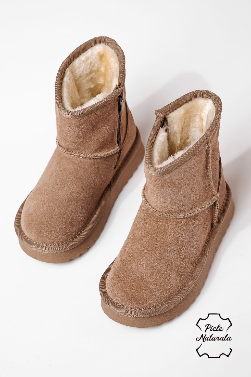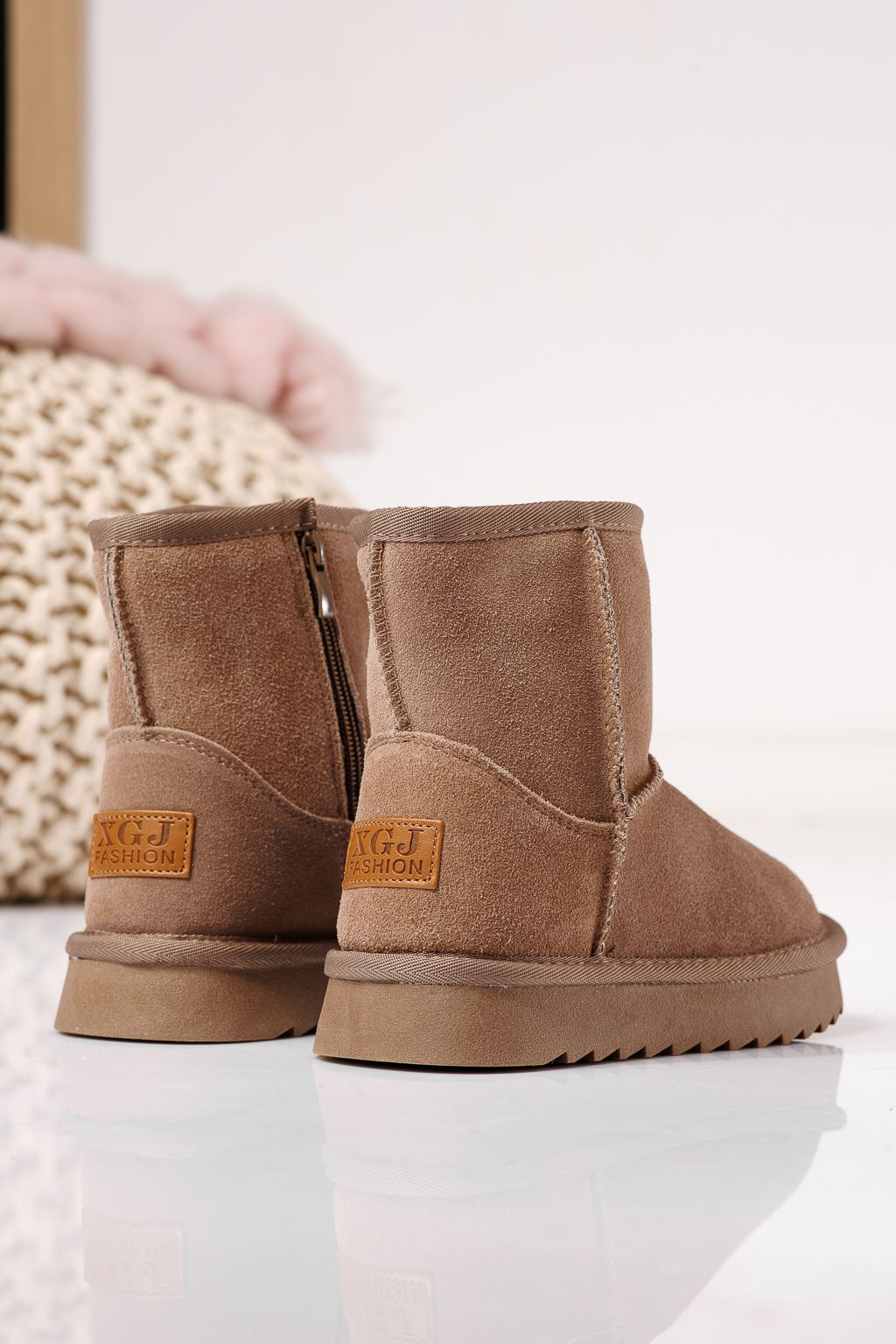 Ghete fete îmblanite maro din piele naturala intoarsa Flori #23000