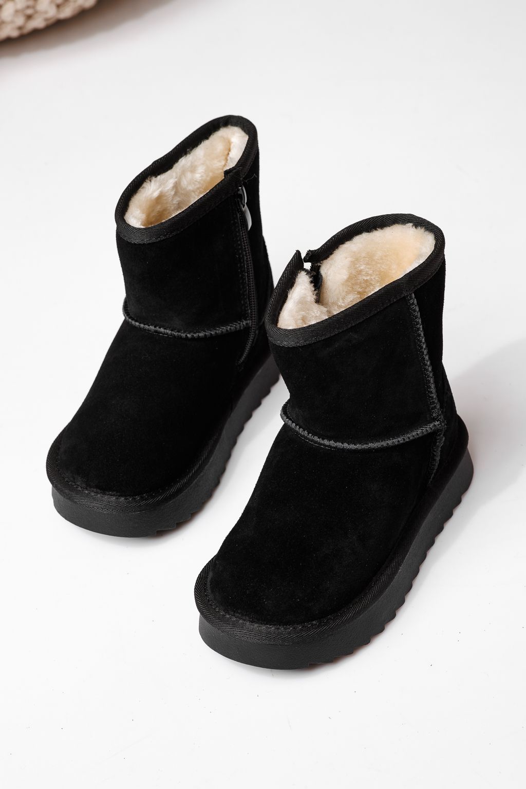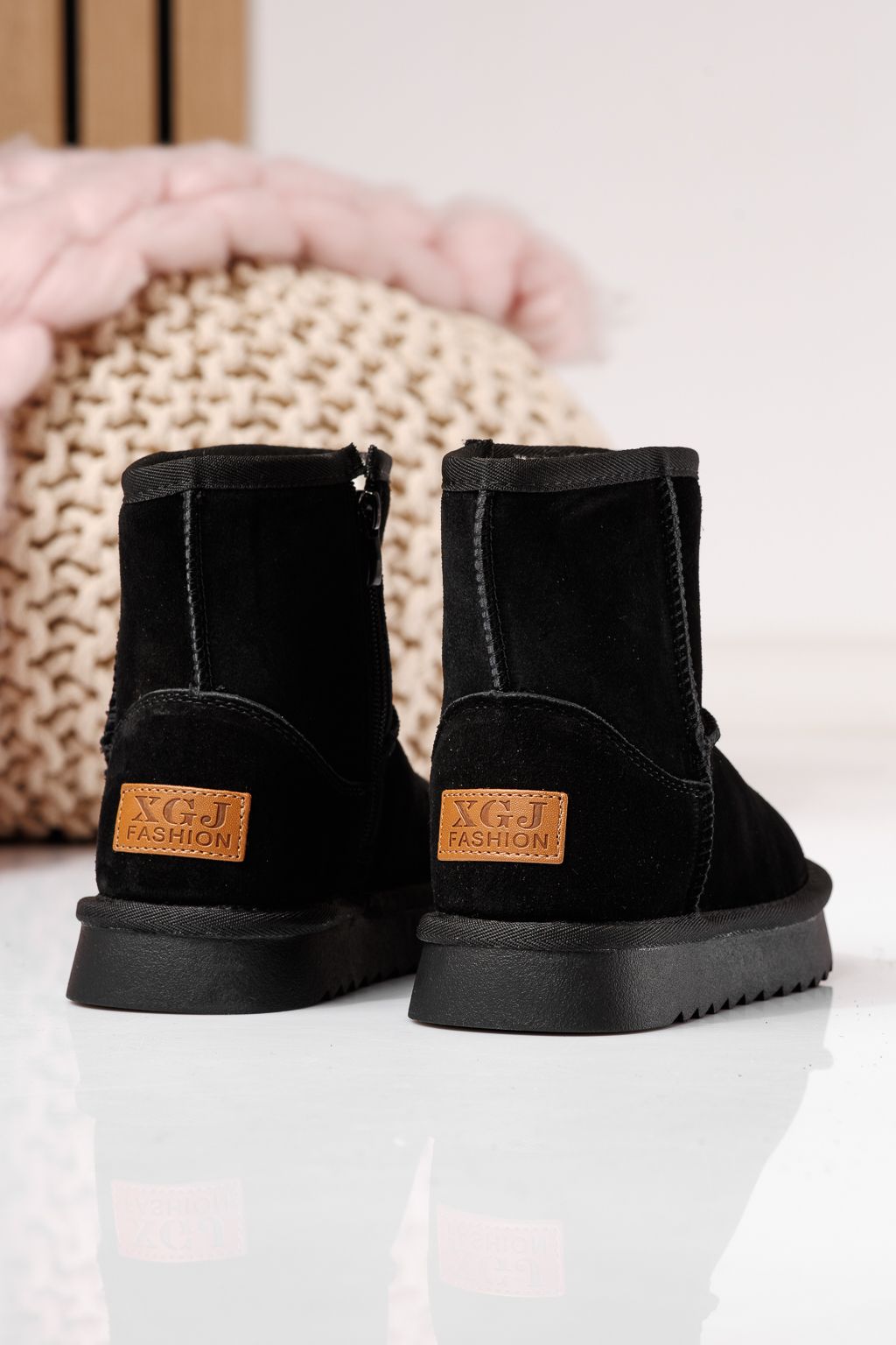 Ghete fete îmblanite negre din piele naturala intoarsa Flori #23015