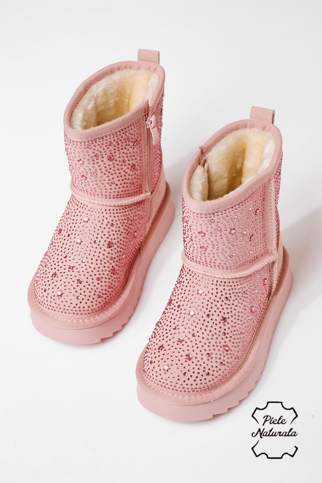 Ghete fete îmblanite roz din piele naturala intoarsa Marisa #23018