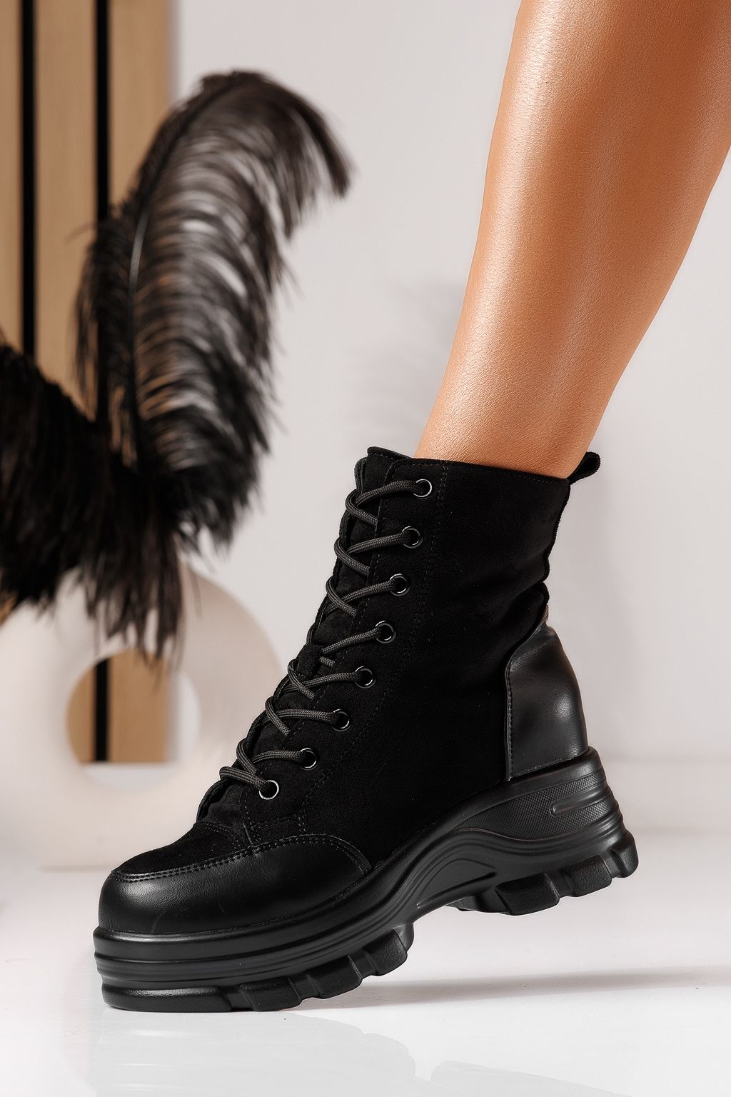 Ghete dama vatuite negre din piele ecologica intoarsa Sarah #23032