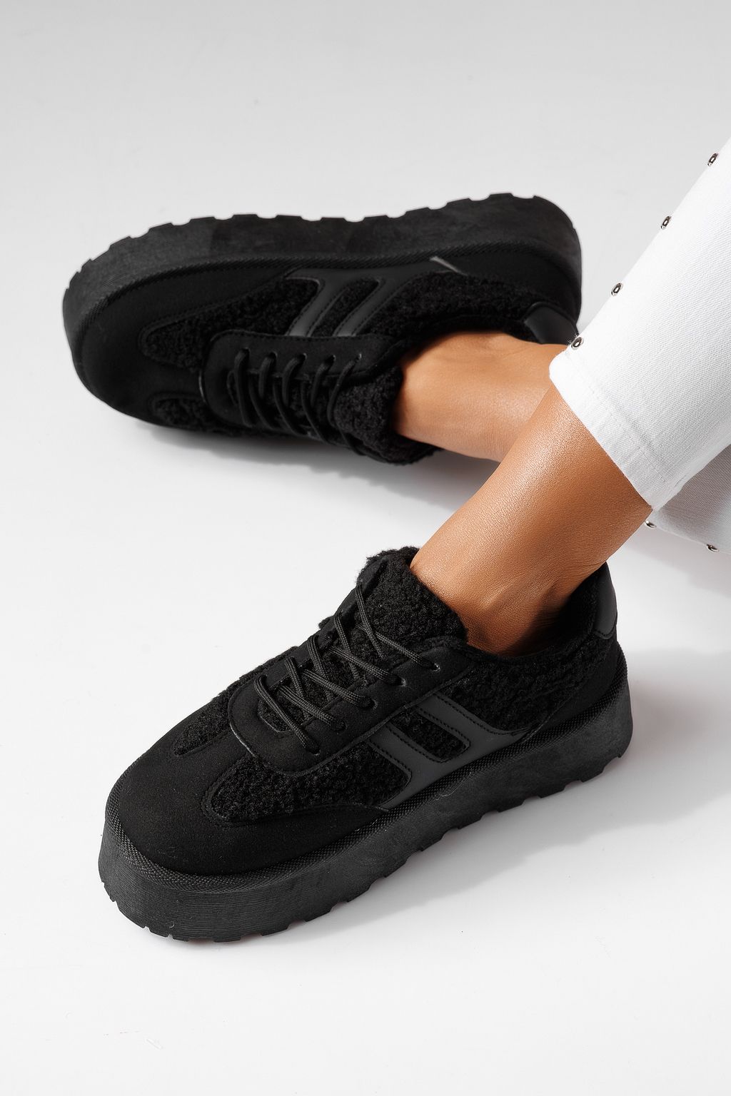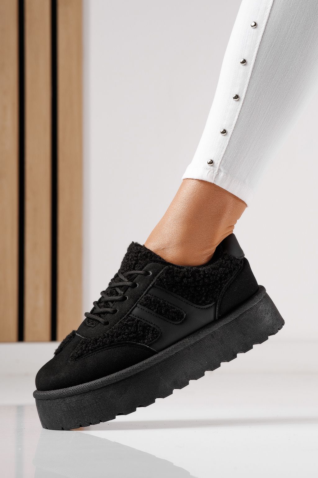 Adidasi dama vatuiti negri din piele ecologica intoarsa Lale #23041
