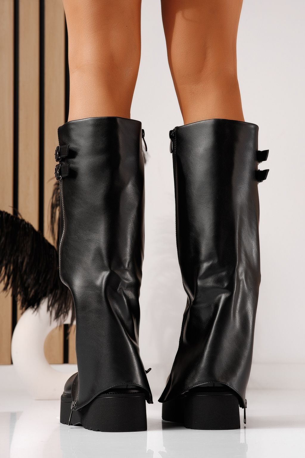 Cizme scurte dama îmblanite negre din piele ecologica Nulefer #23047