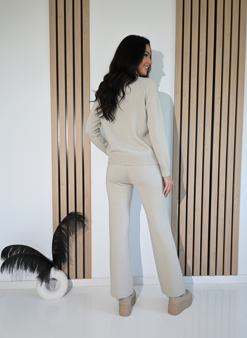 Compleu Dama bej Sara 2 piese tricot #A1259