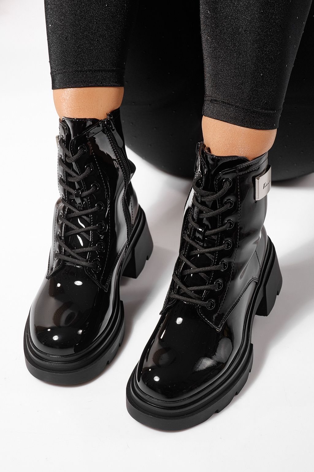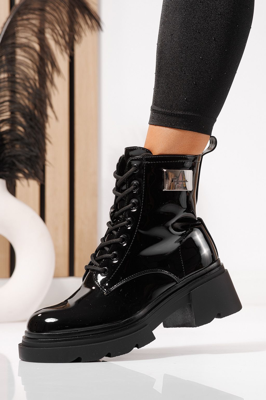 Prima pagină Incaltaminte dama Ghete dama Ghete de iarna Ghete dama îmblanite negre din piele ecologica lacuita Joplin #23083