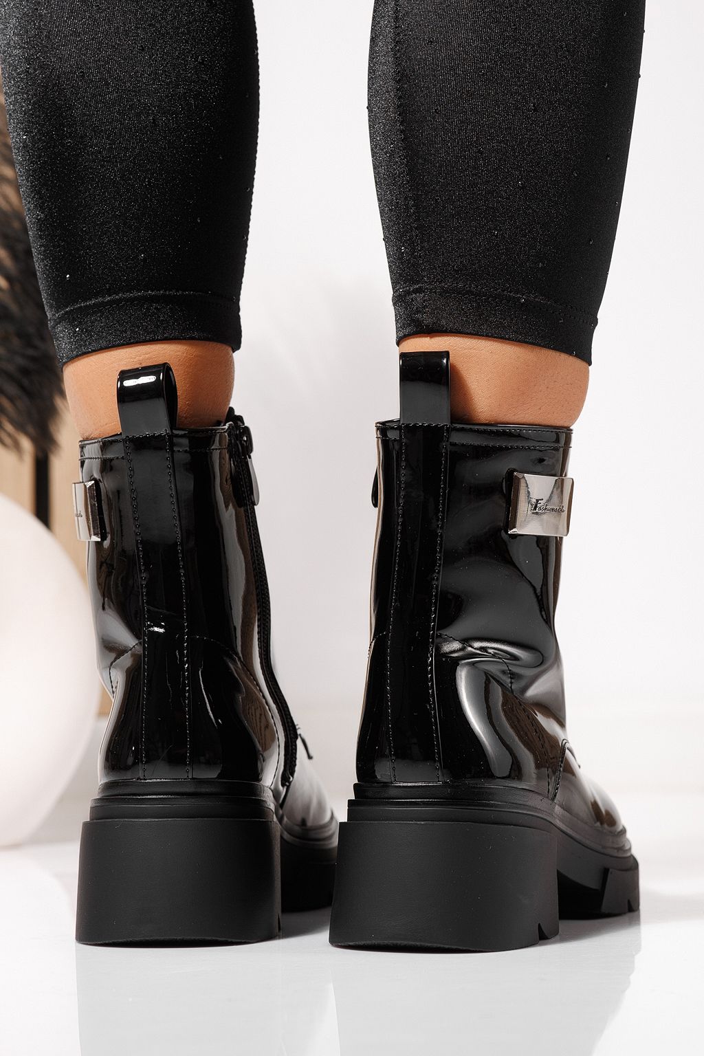 Ghete dama îmblanite negre din piele ecologica lacuita Joplin #23083