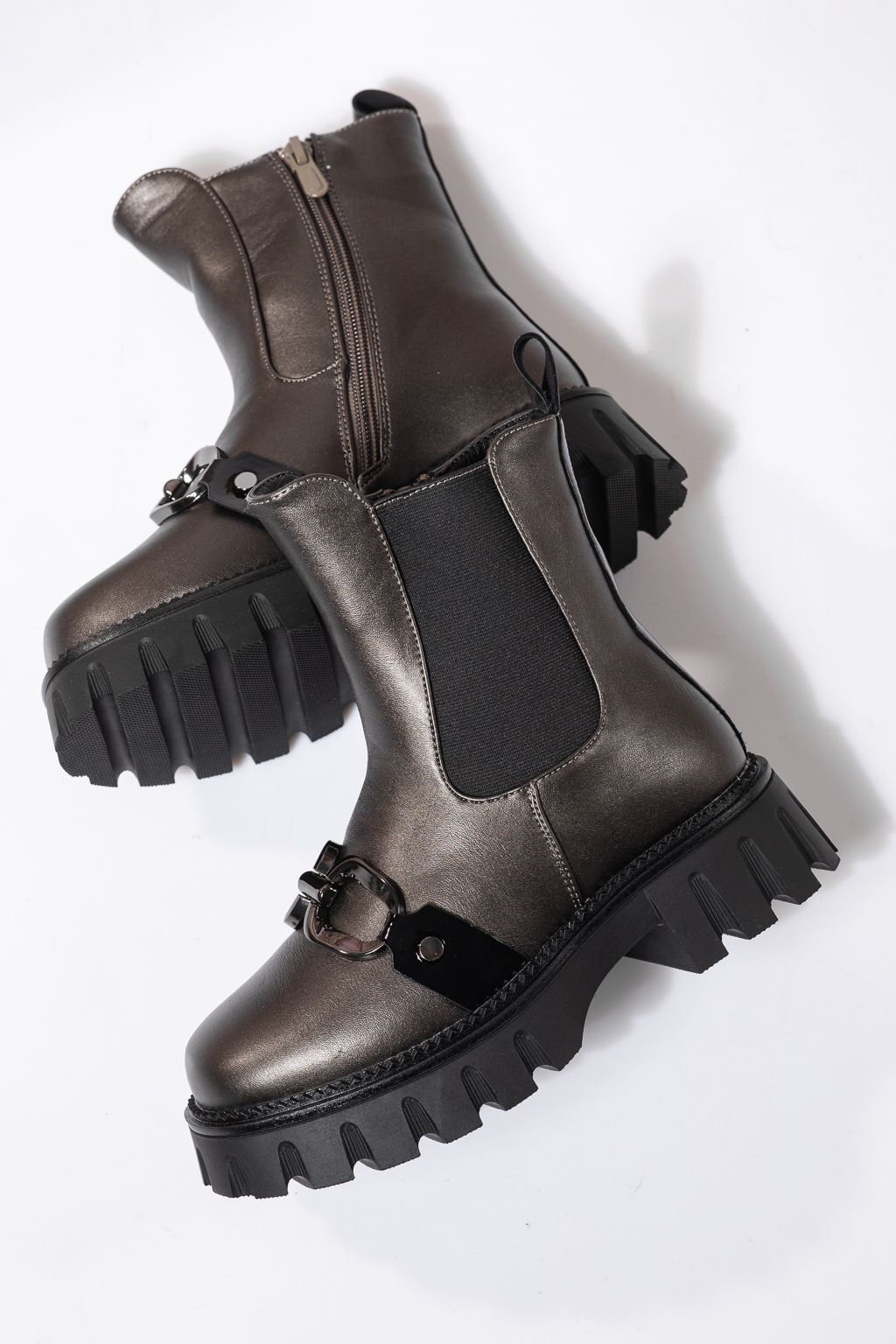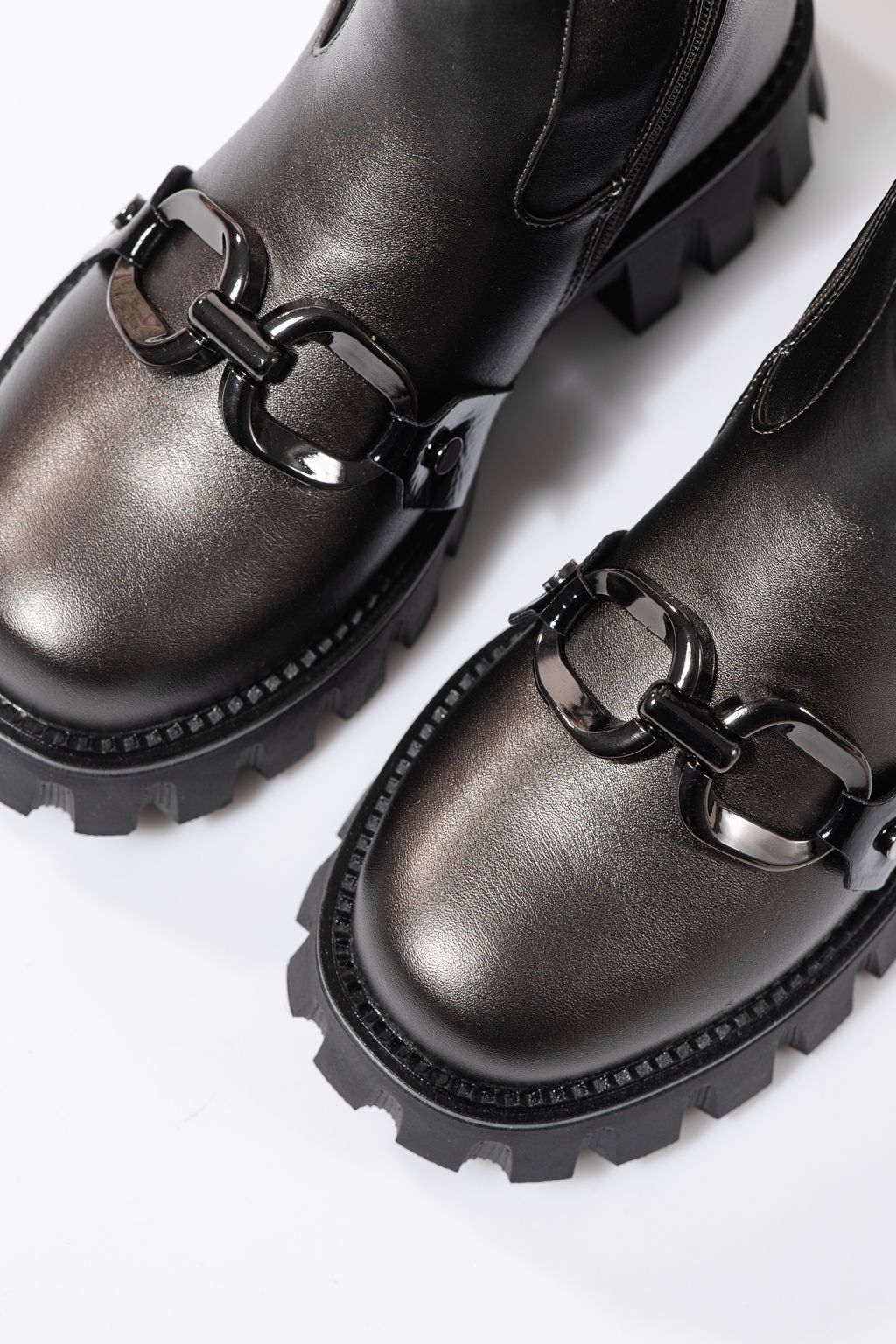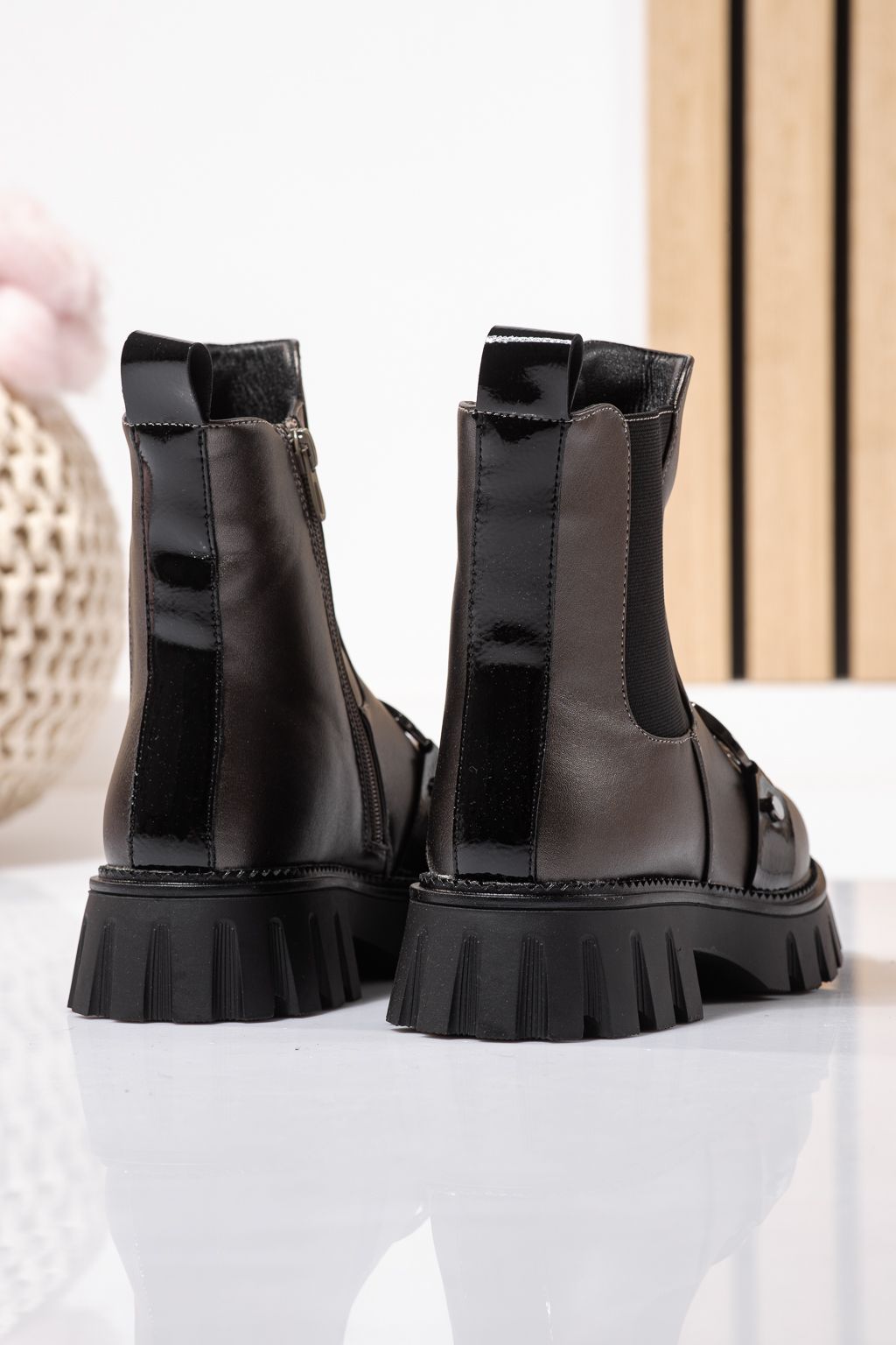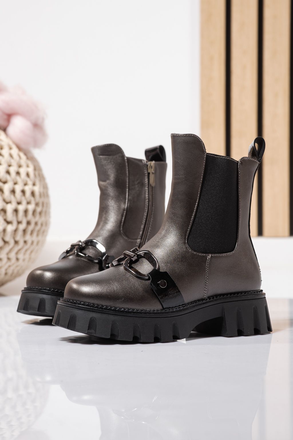 Ghete fete imblanite gri din piele ecologica Bela #23112