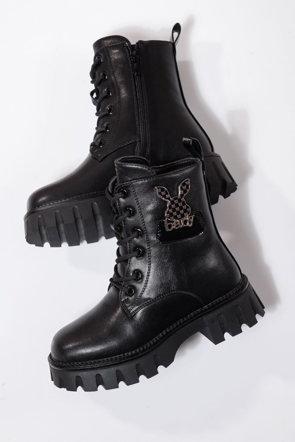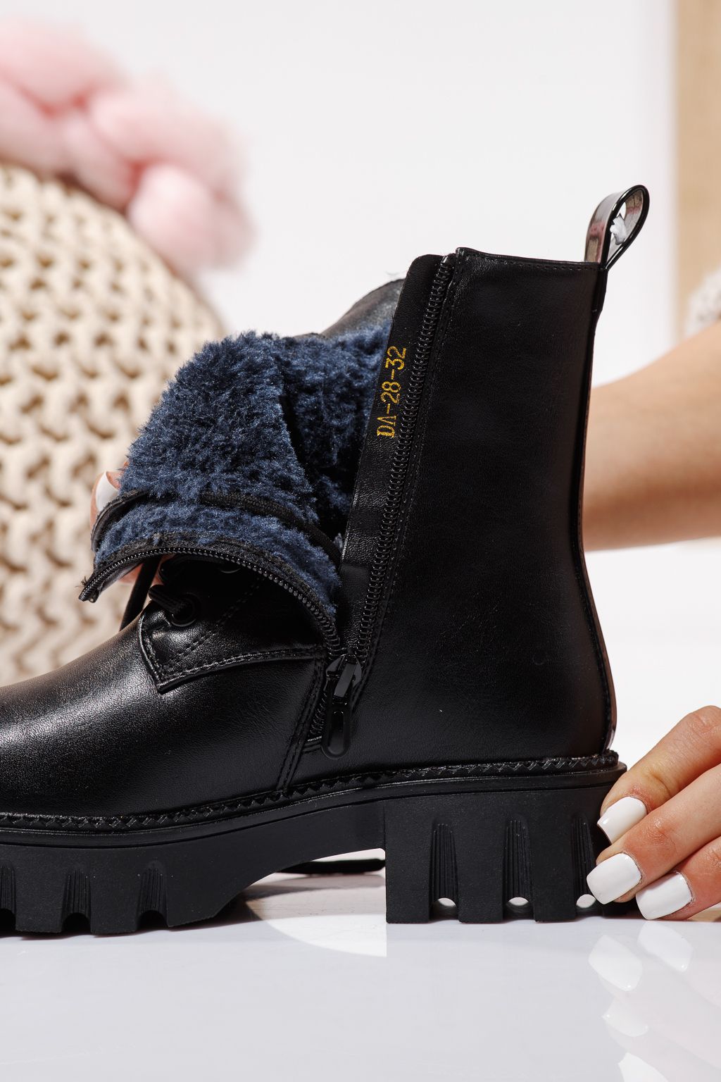 Prima pagină Incaltaminte dama Incaltaminte Copii Ghete copii Ghete fete imblanite negre din piele ecologica Aris #23115