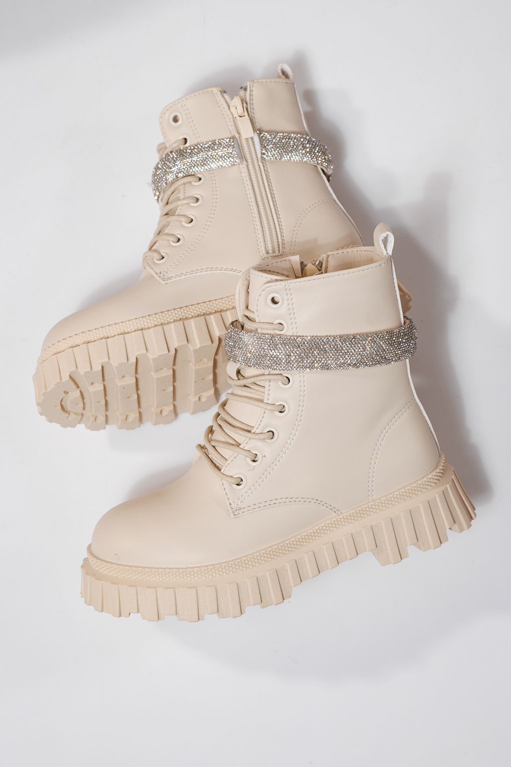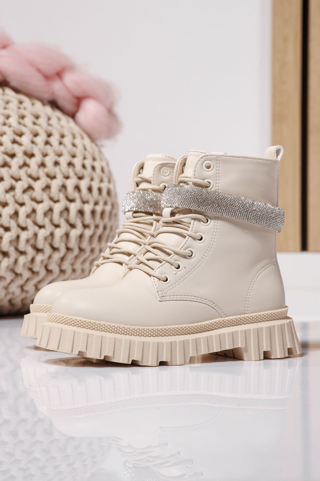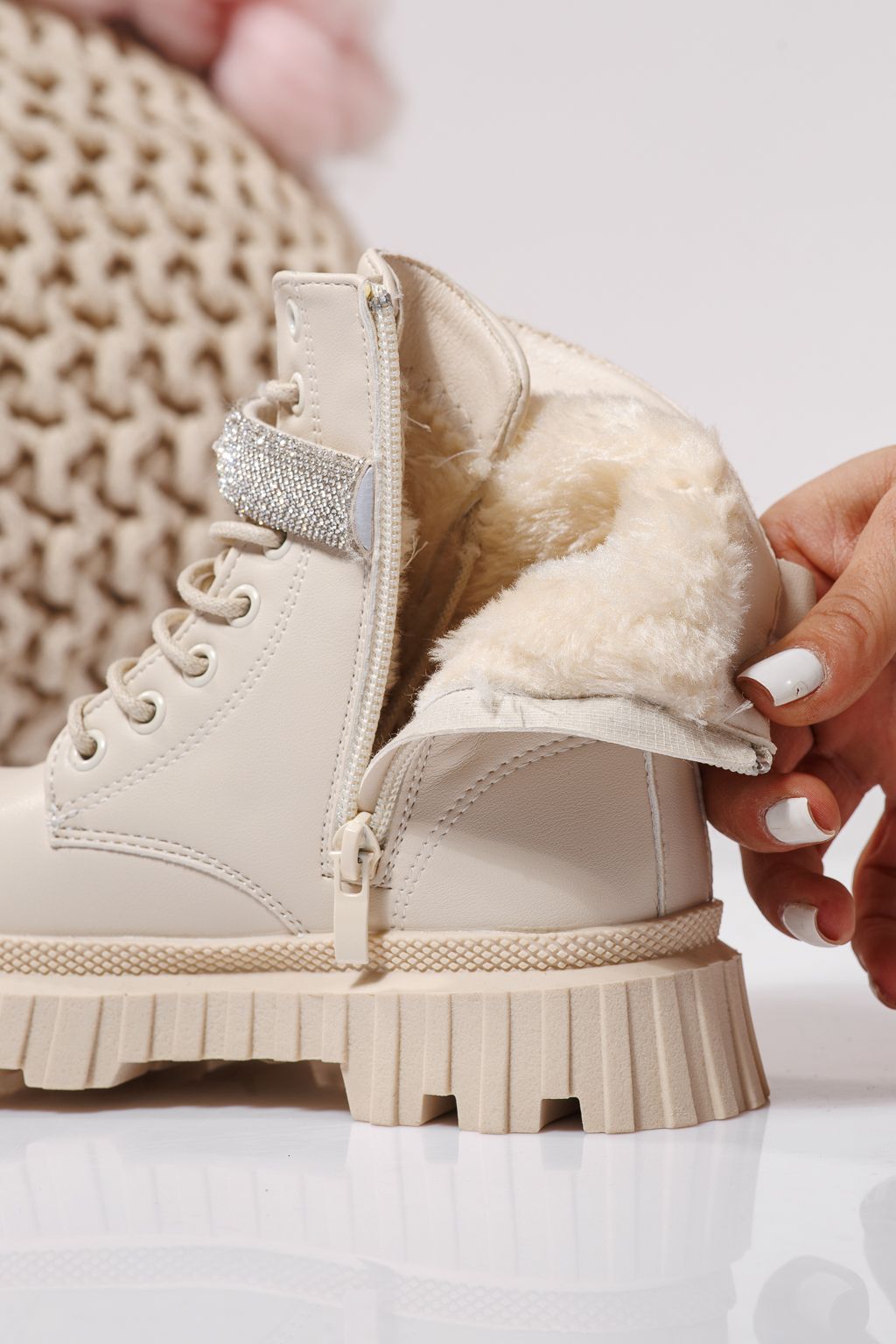 Prima pagină Incaltaminte dama Incaltaminte Copii Ghete copii Ghete fete imblanite bej din piele ecologica Dora #23121