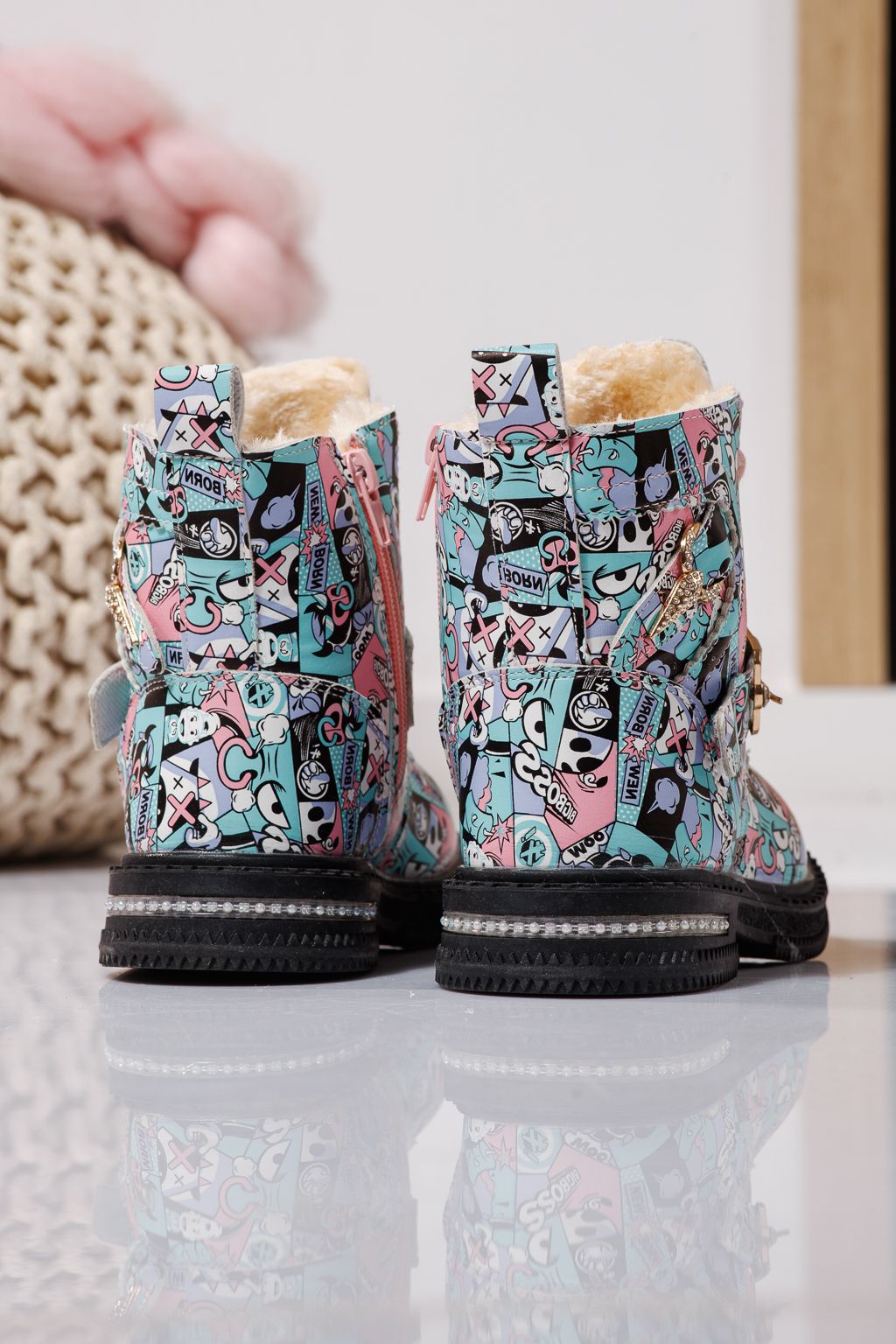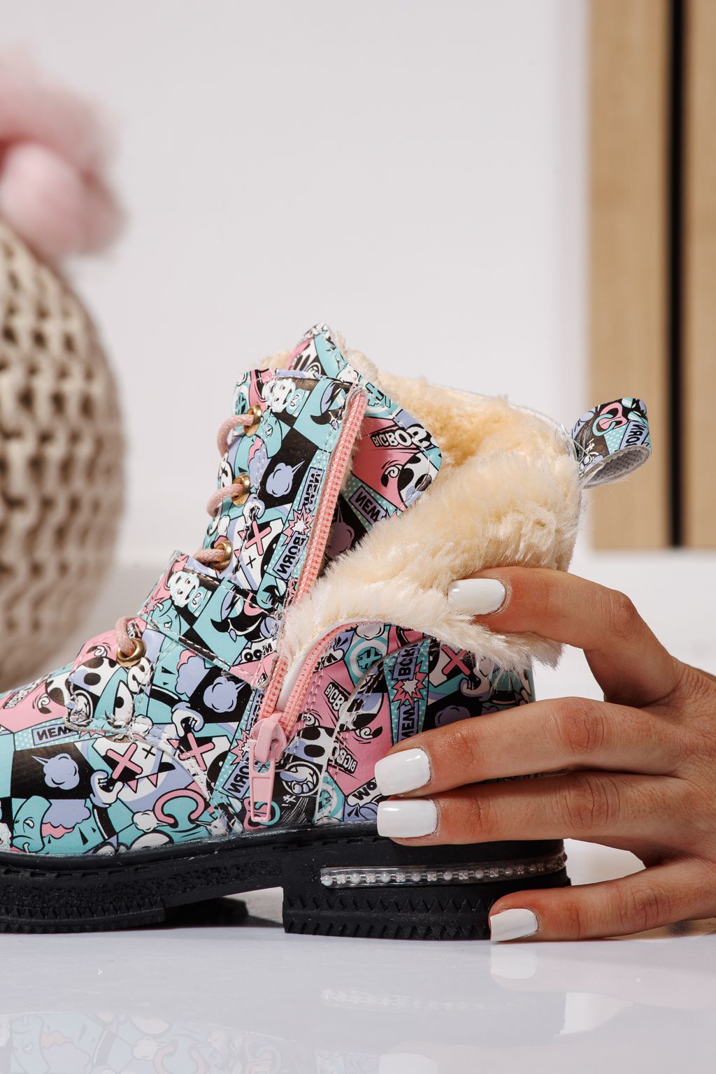 Prima pagină Incaltaminte dama Incaltaminte Copii Ghete copii Ghete fete imblanite roz din piele ecologica Eliza #23131