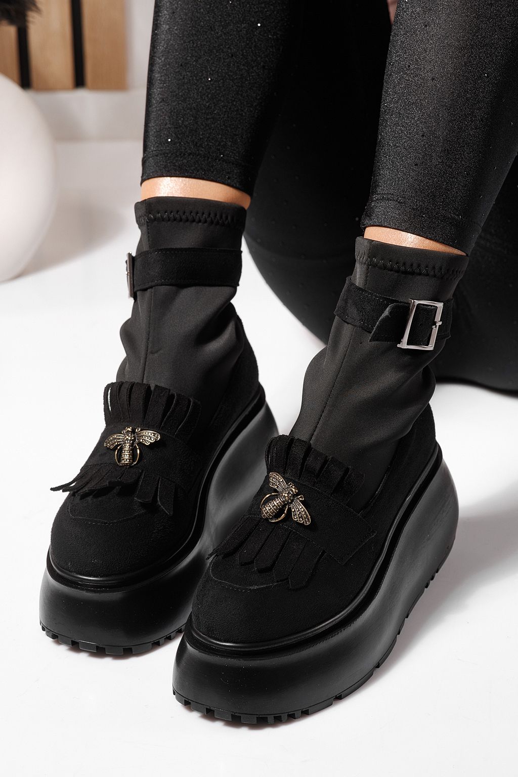Prima pagină Incaltaminte dama Ghete dama Ghete de iarna Ghete dama captusite negre din piele ecologica intoarsa Venus #23160