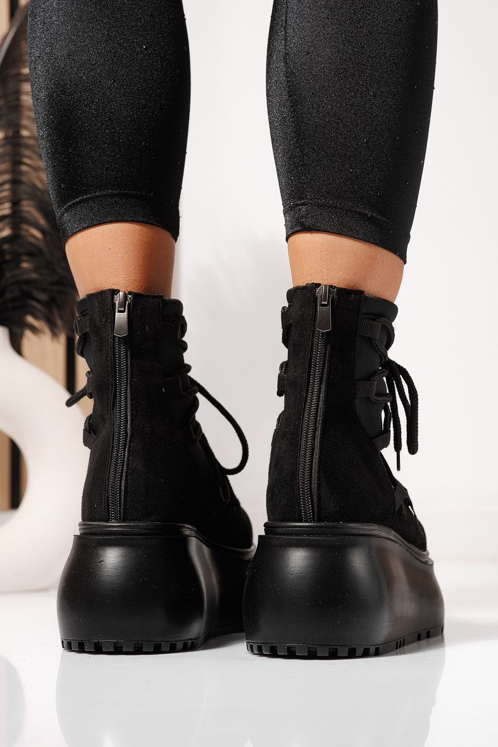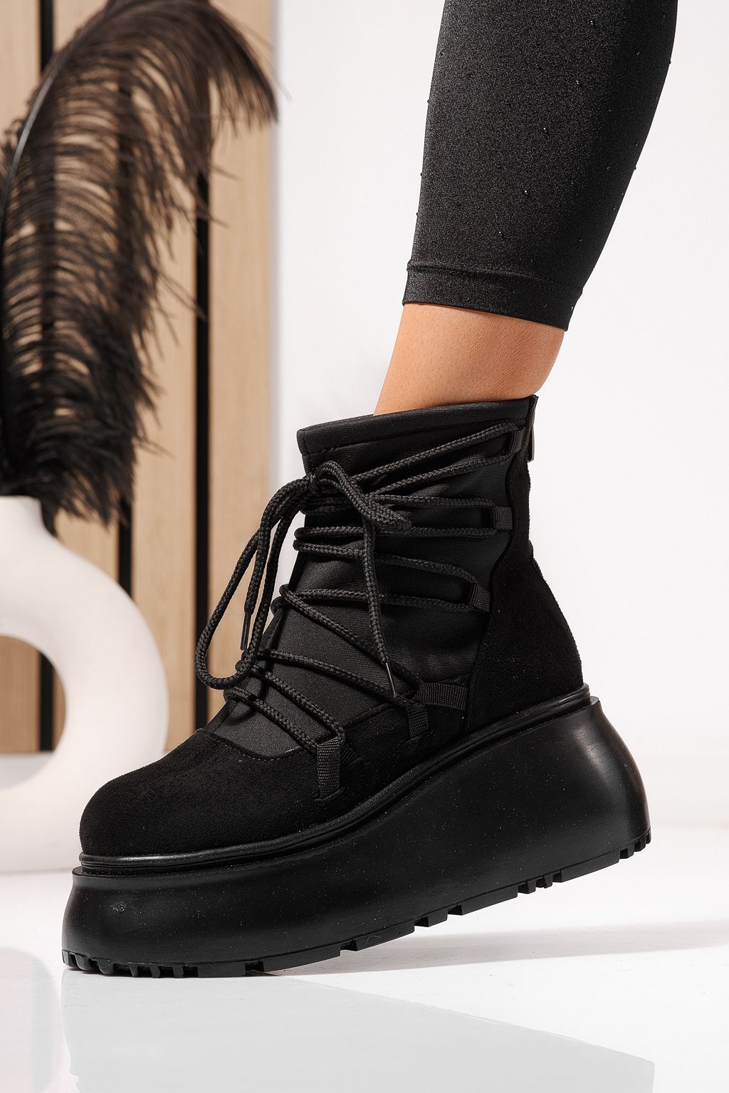 Prima pagină Incaltaminte dama Ghete dama Ghete de iarna Ghete dama captusite negre din piele ecologica intoarsa Ingrid #23165