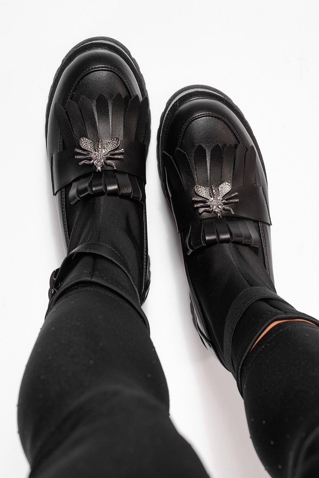 Ghete dama captusite negre din piele ecologica intoarsa Eniko #23168