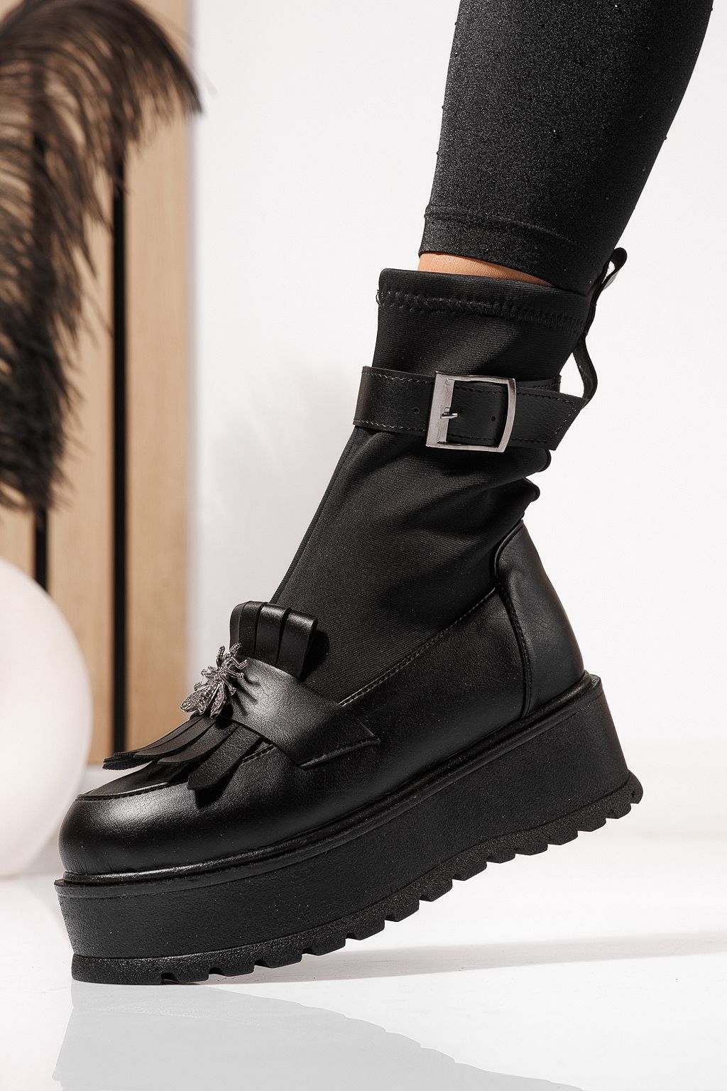 Prima pagină Incaltaminte dama Ghete dama Ghete de iarna Ghete dama captusite negre din piele ecologica intoarsa Eniko #23168