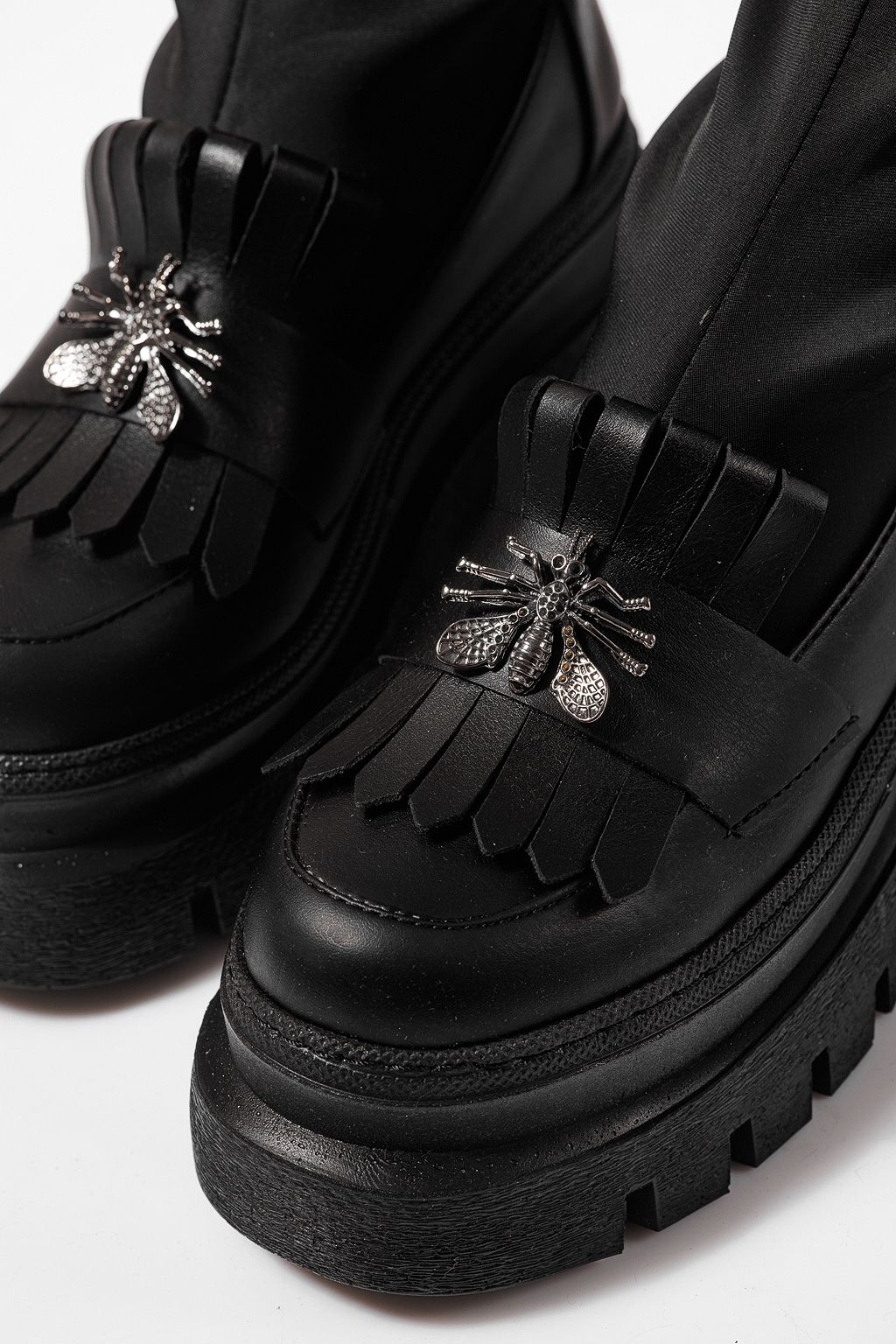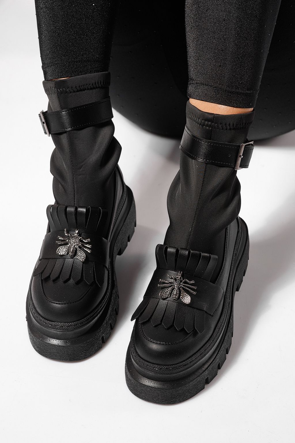 Ghete dama captusite negre din piele ecologica Floris #23169