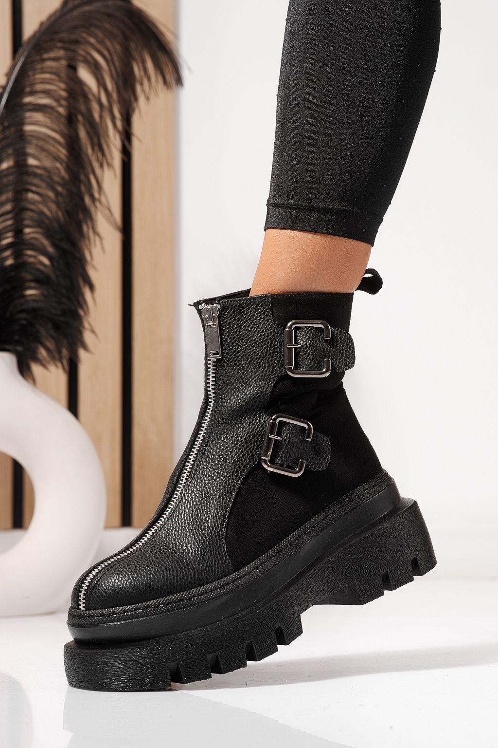 Prima pagină Incaltaminte dama Ghete dama Ghete de iarna Ghete dama îmblanite negre din piele ecologica Eniko #23171