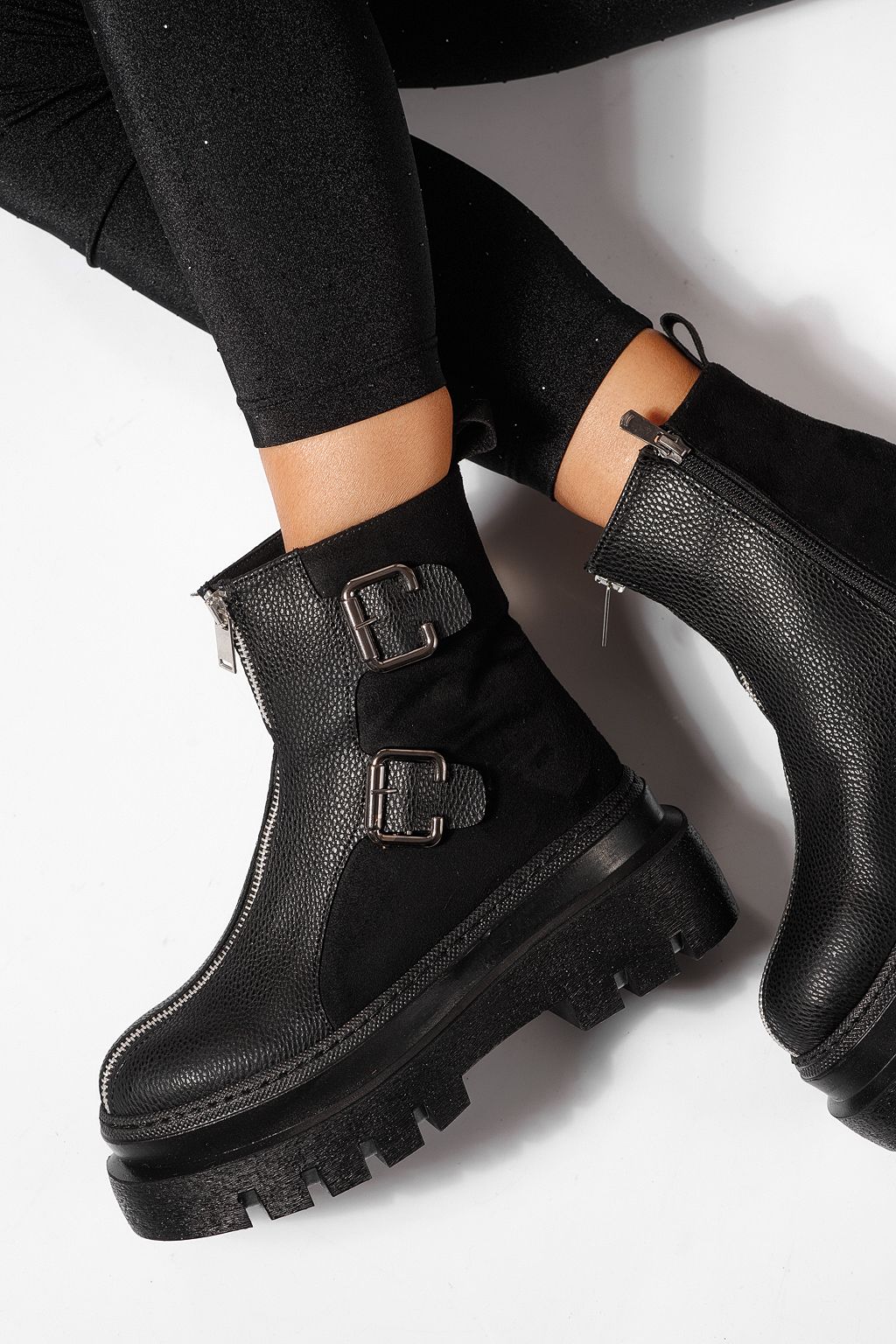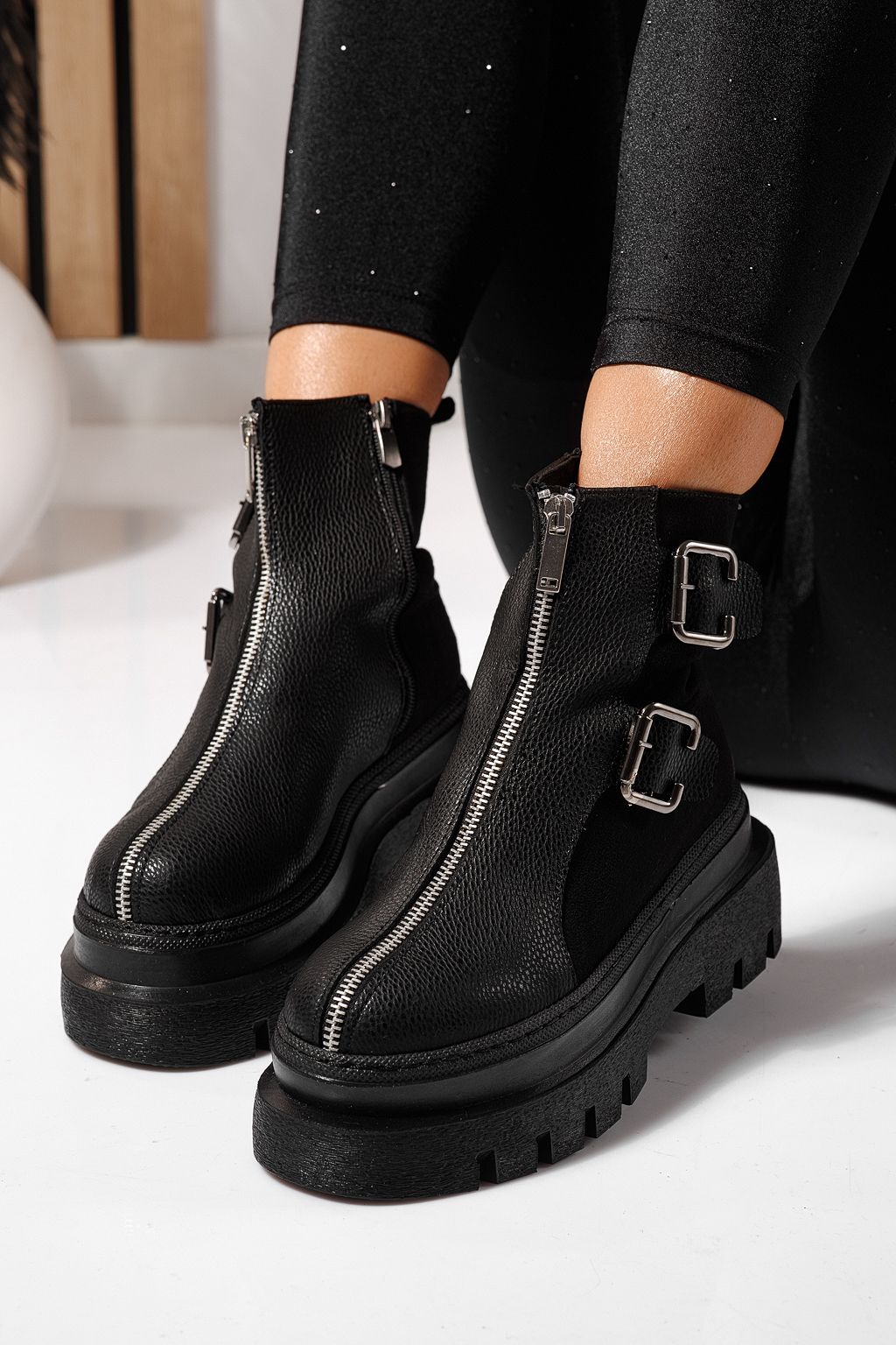 Ghete dama îmblanite negre din piele ecologica Eniko #23171
