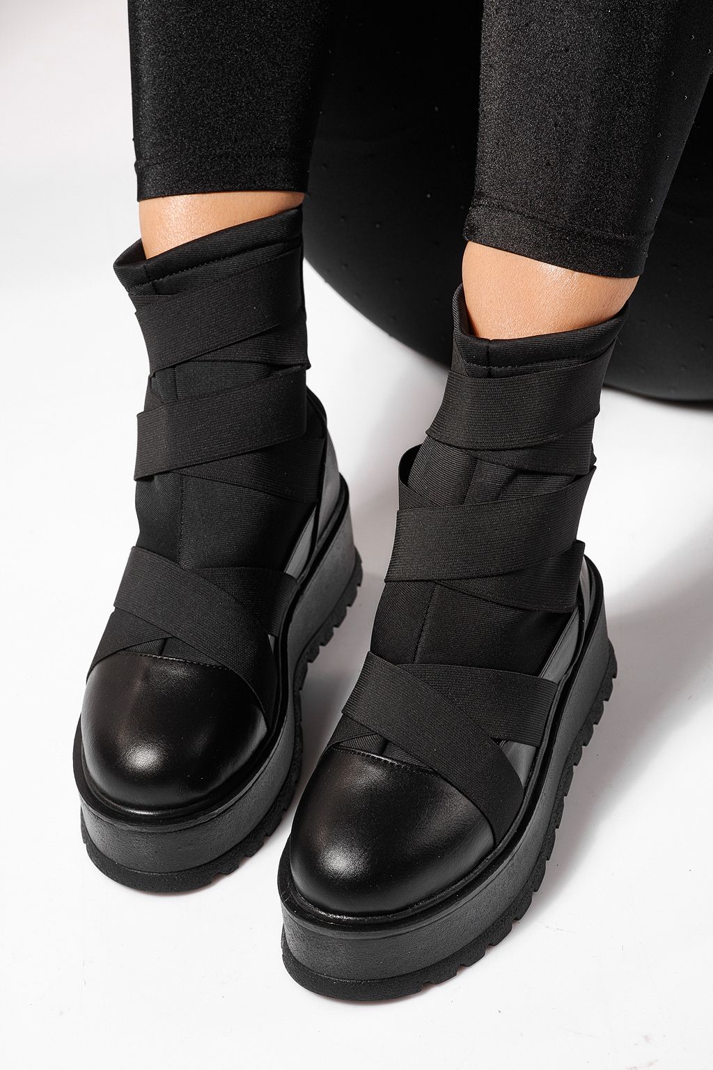 Prima pagină Incaltaminte dama Ghete dama Ghete de iarna Ghete dama îmblanite negre din piele ecologica Ellis #23173