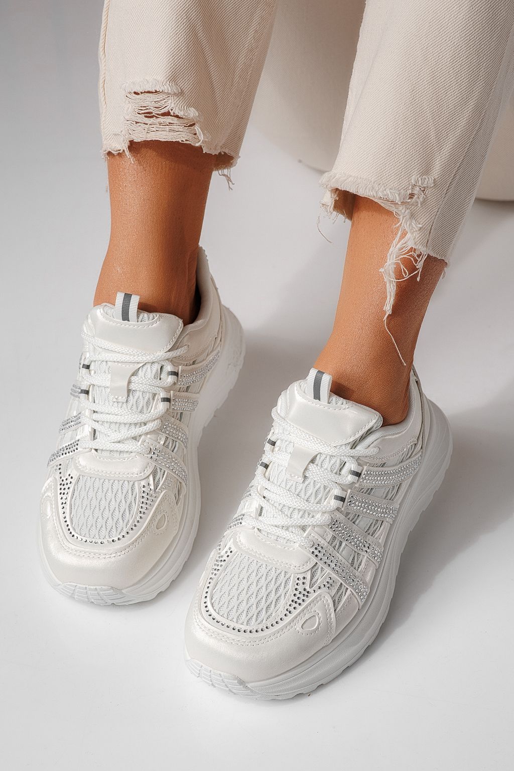Adidasi dama albi din piele ecologica Carolina #24061