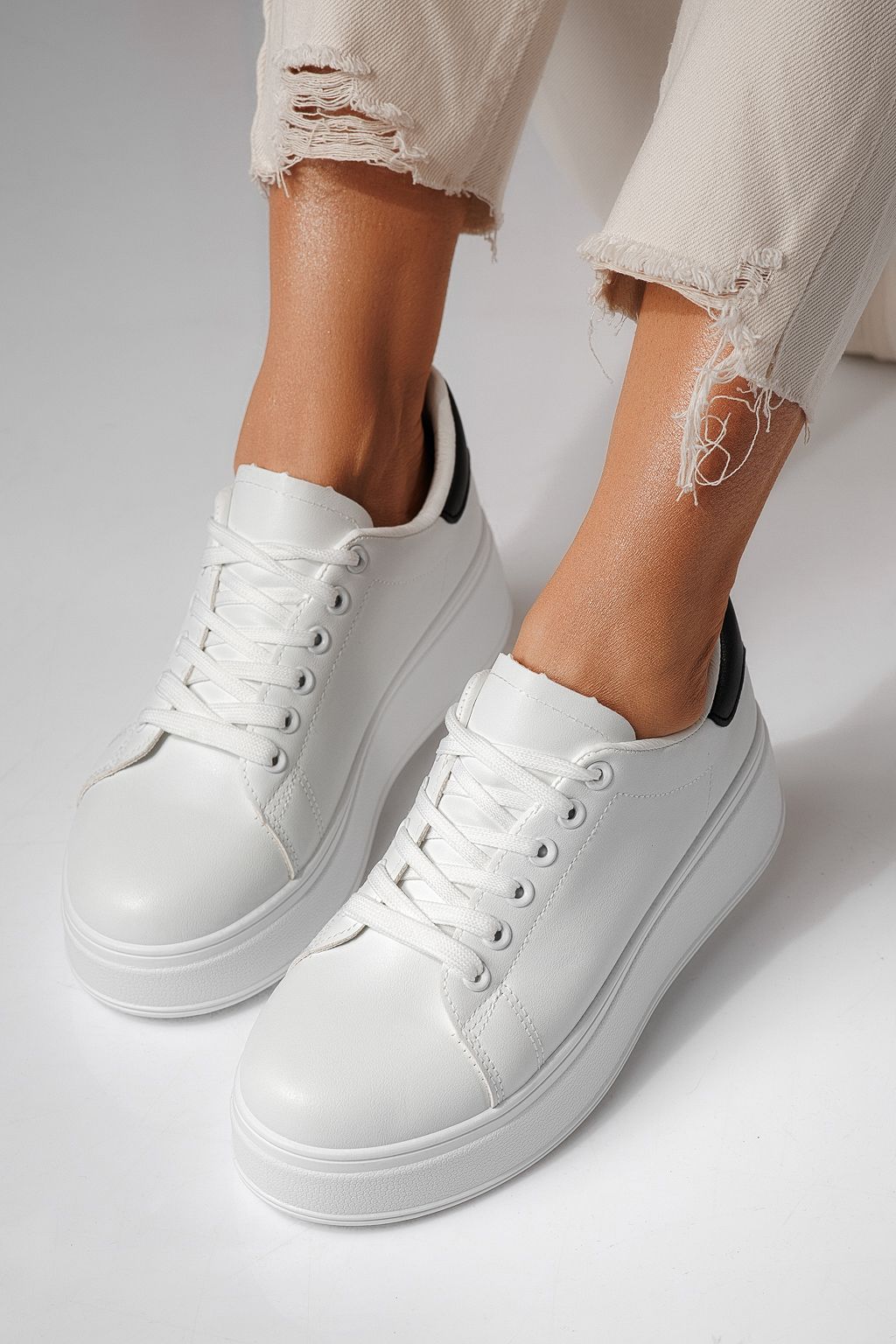 Adidasi dama albi din piele ecologica Celin #24062