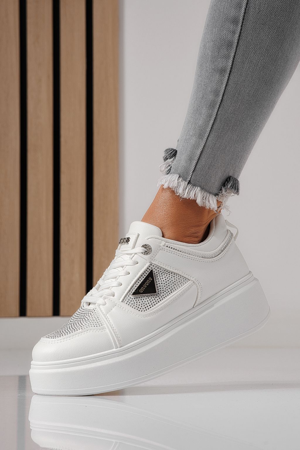 Adidasi dama albi din piele ecologica Delia #24079
