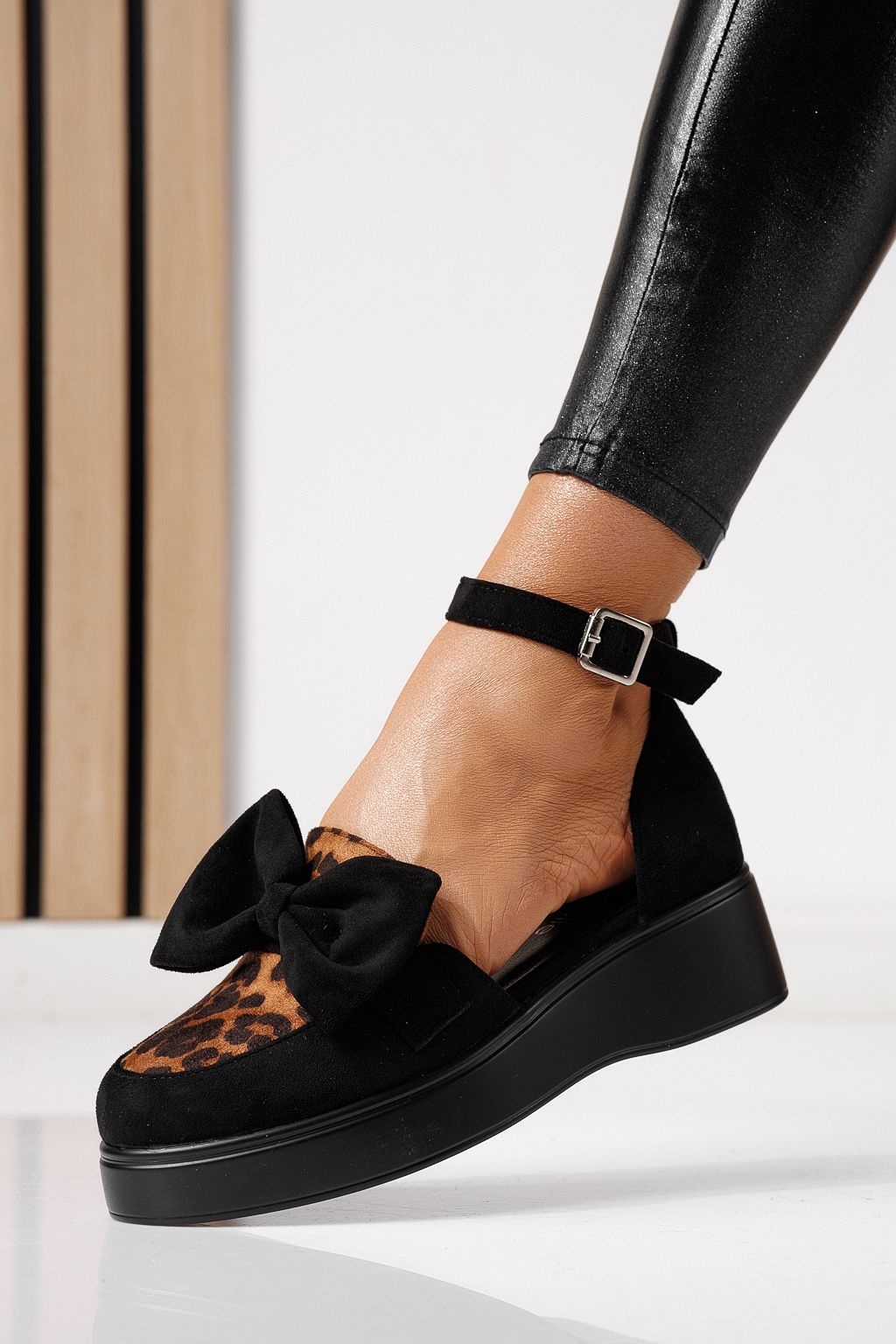Pantofi casual dama leopard din piele ecologica intoarsa Ella #24094