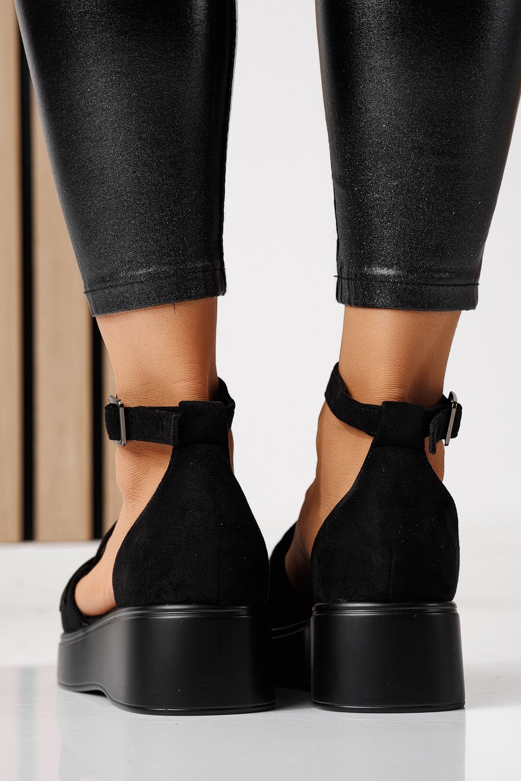 Pantofi casual dama negri din piele ecologica intoarsa Evelina #24097