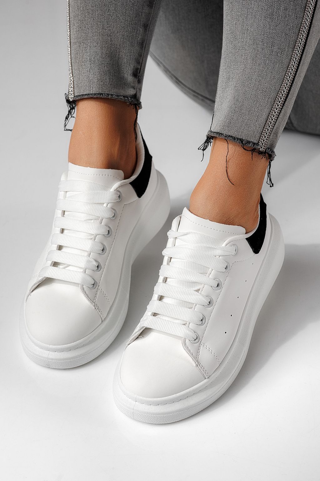 Adidasi dama albi din piele ecologica Raya #24180