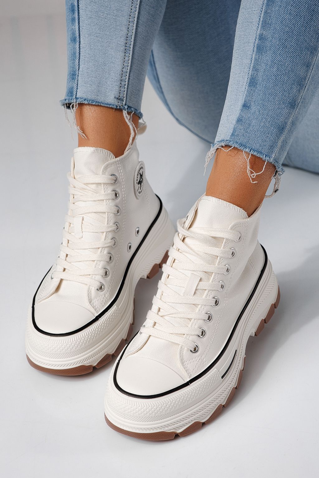 Adidasi dama albi din material textil Seline #24182