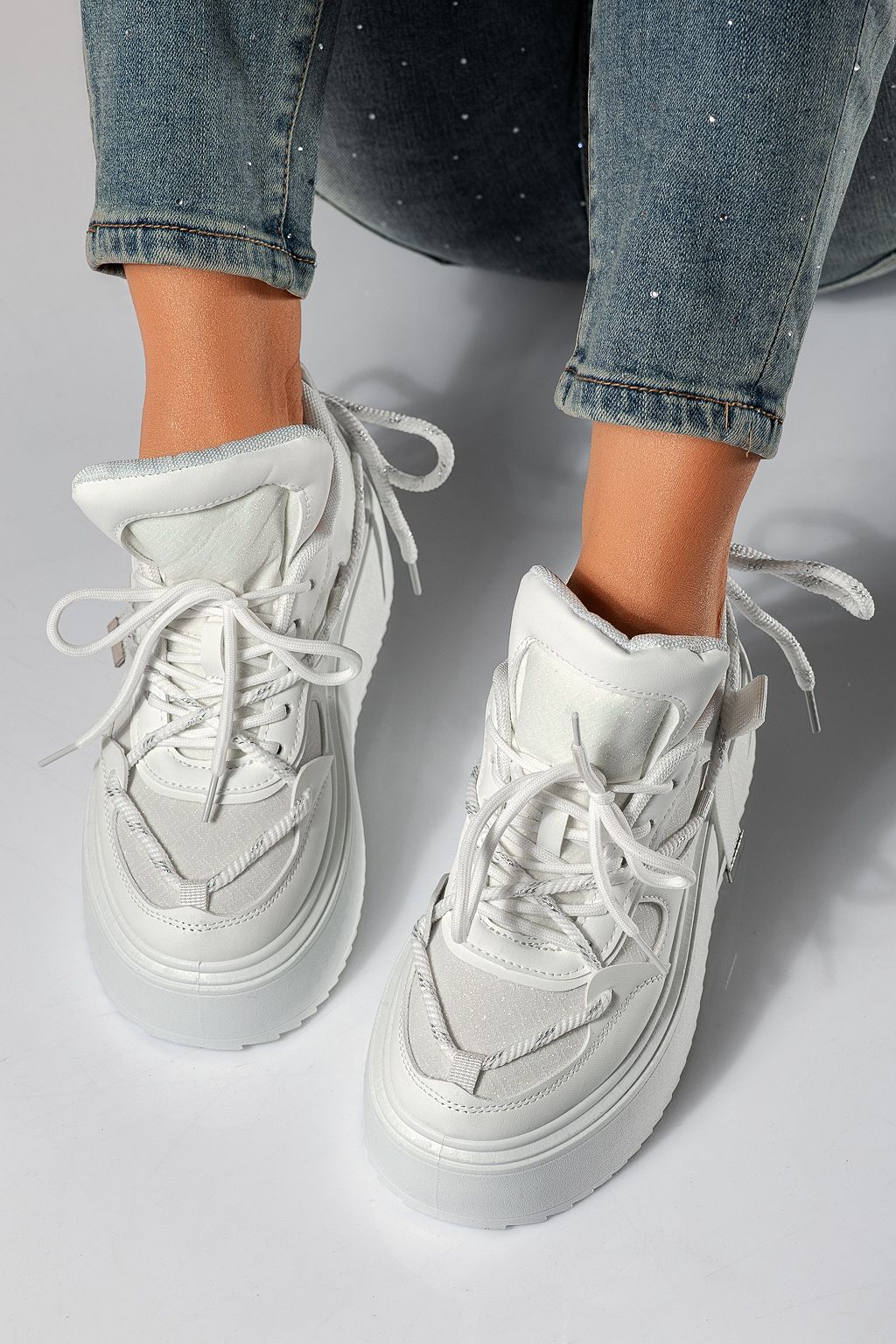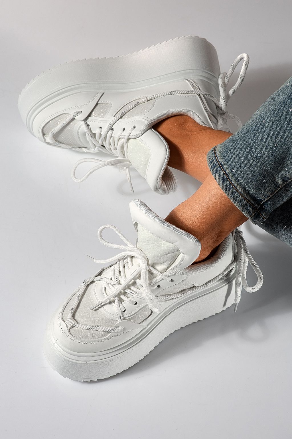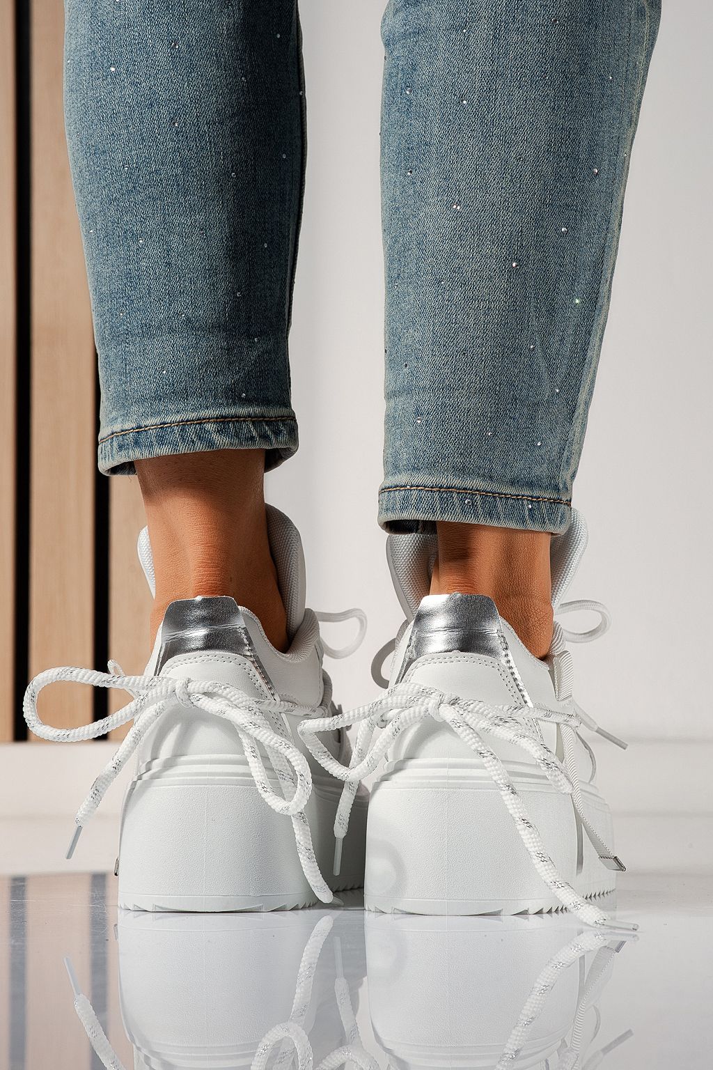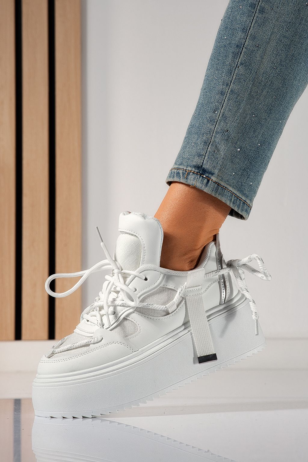 Adidasi dama albi din piele ecologica Elvira #24306