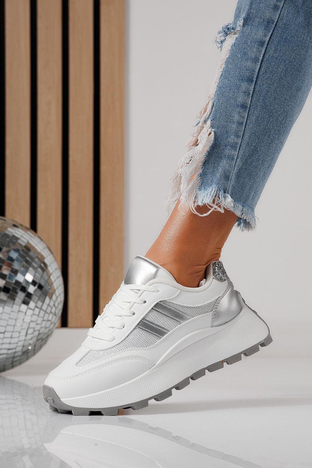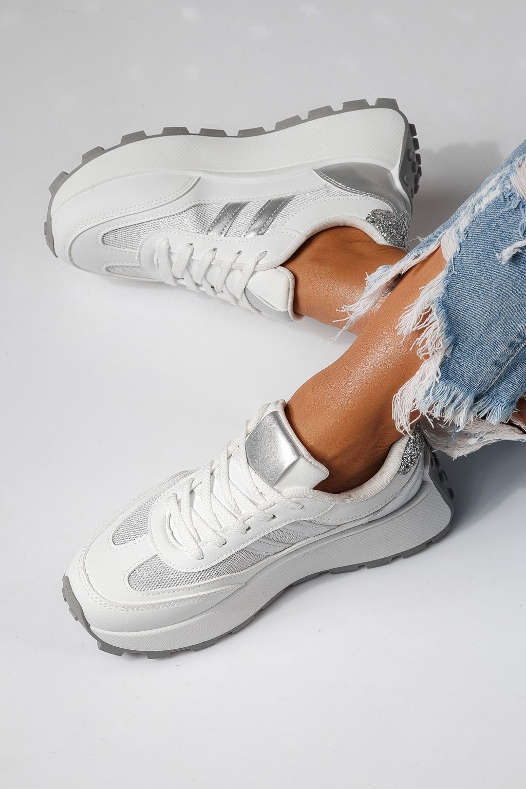Adidasi dama argintii din piele ecologica Mia #24318