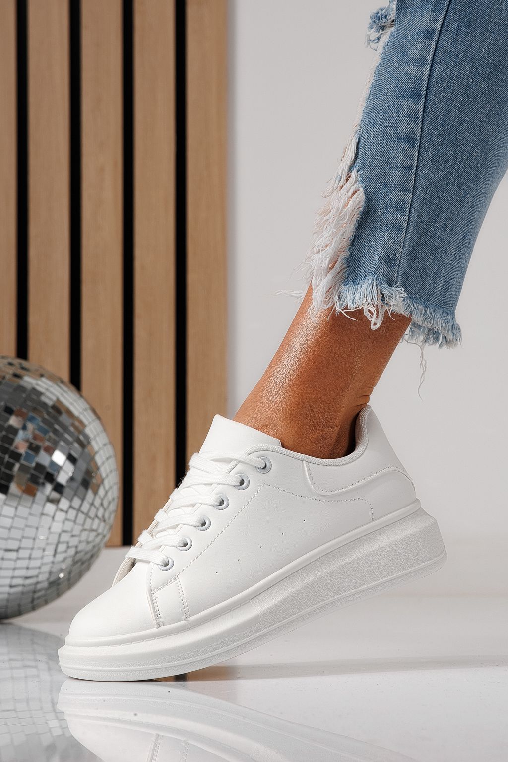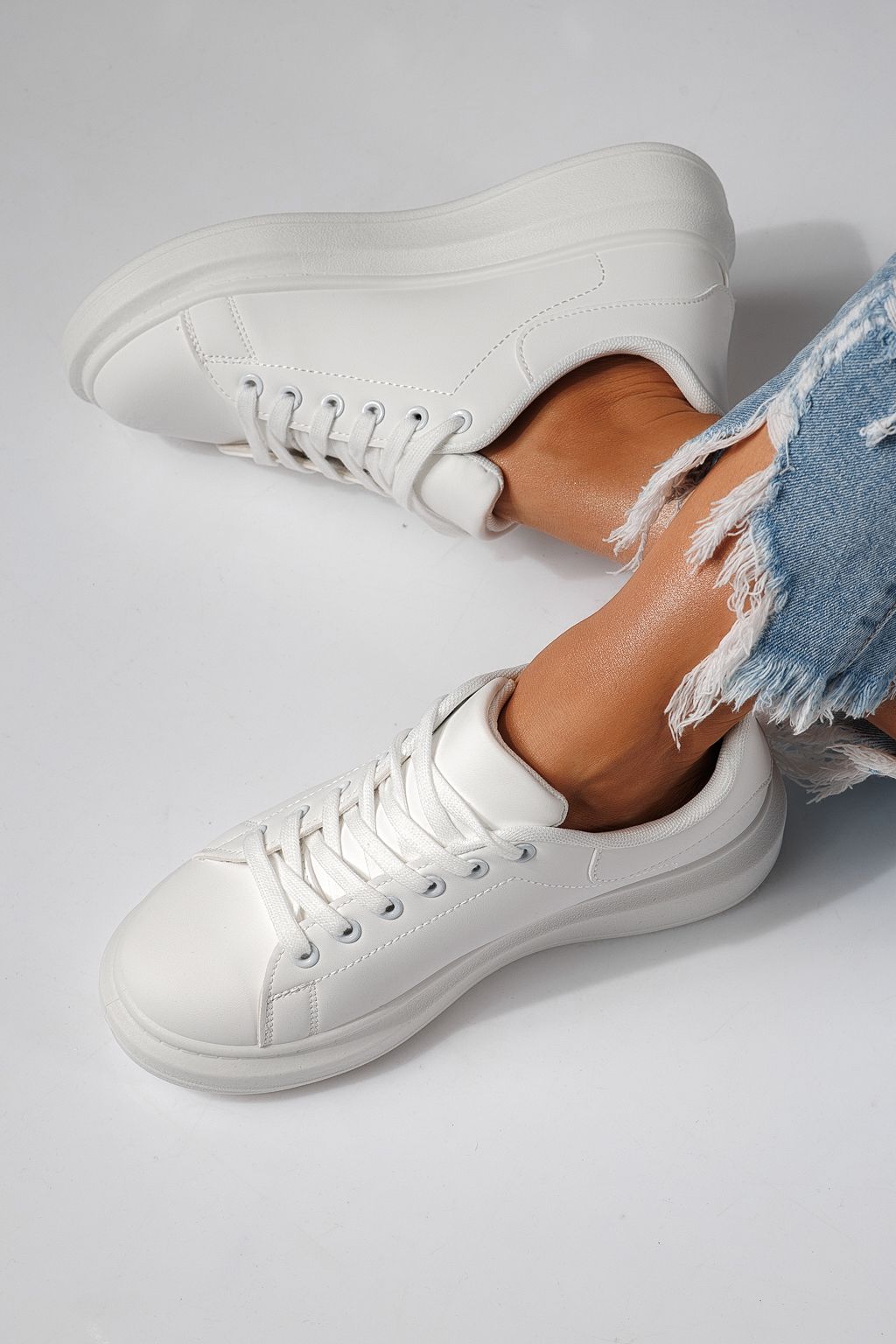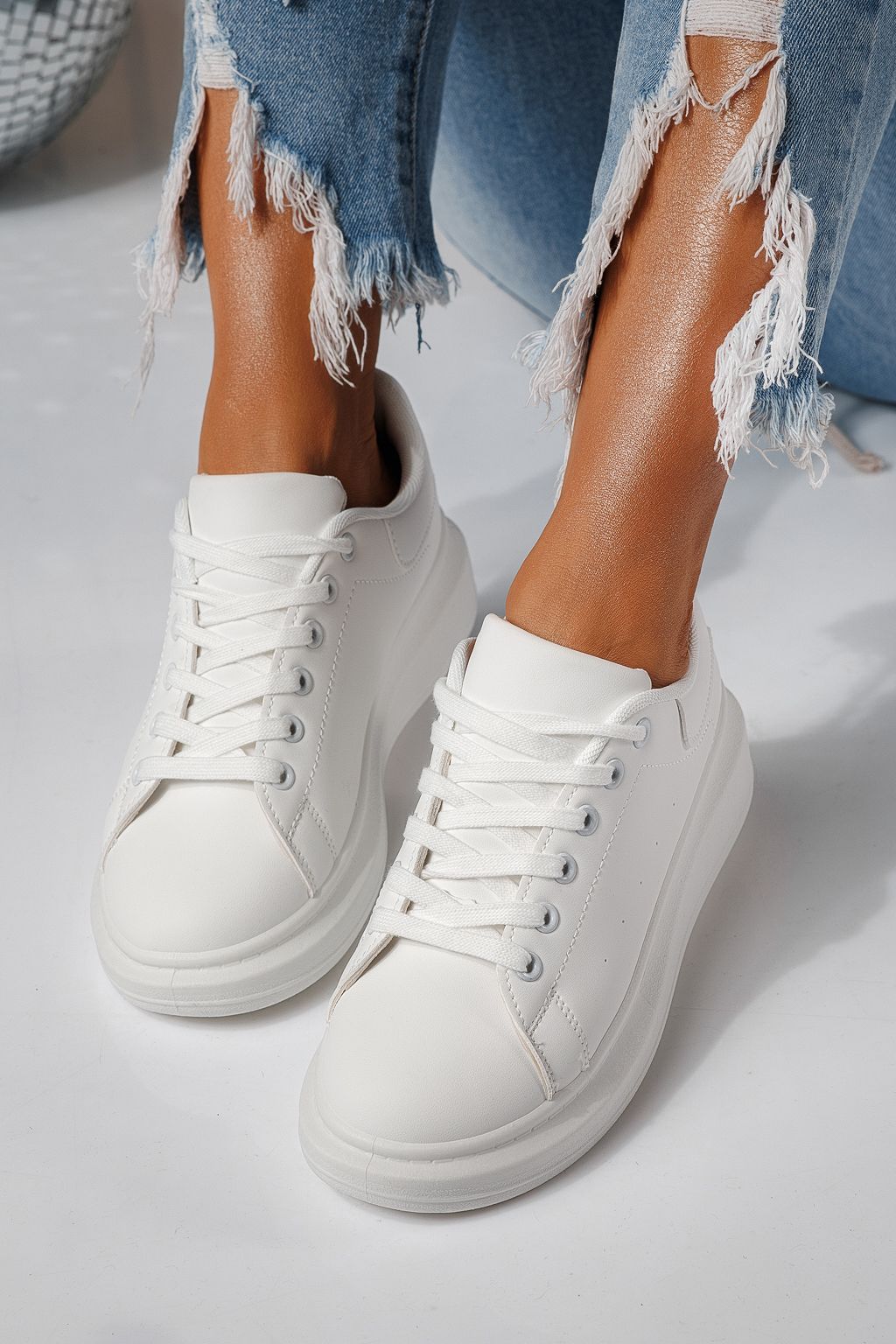 Adidasi dama albi din piele ecologica Sofia #24324