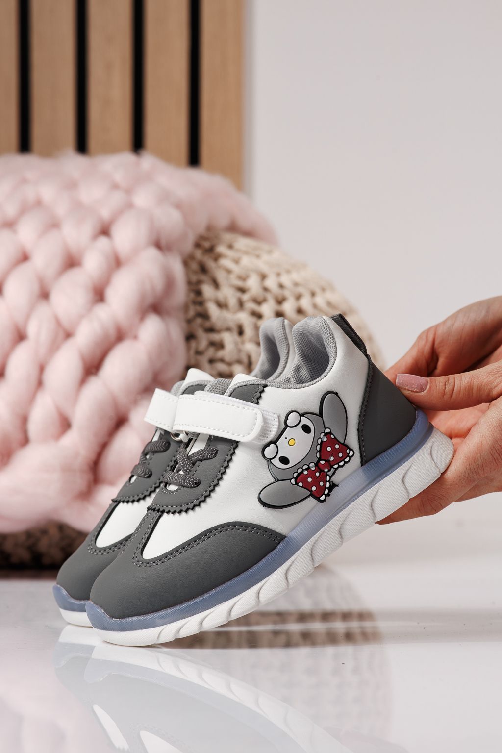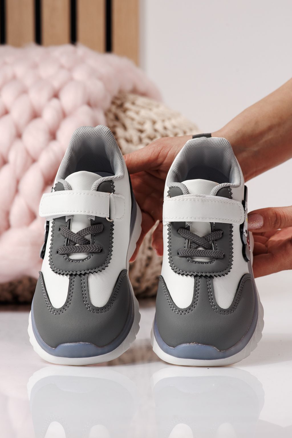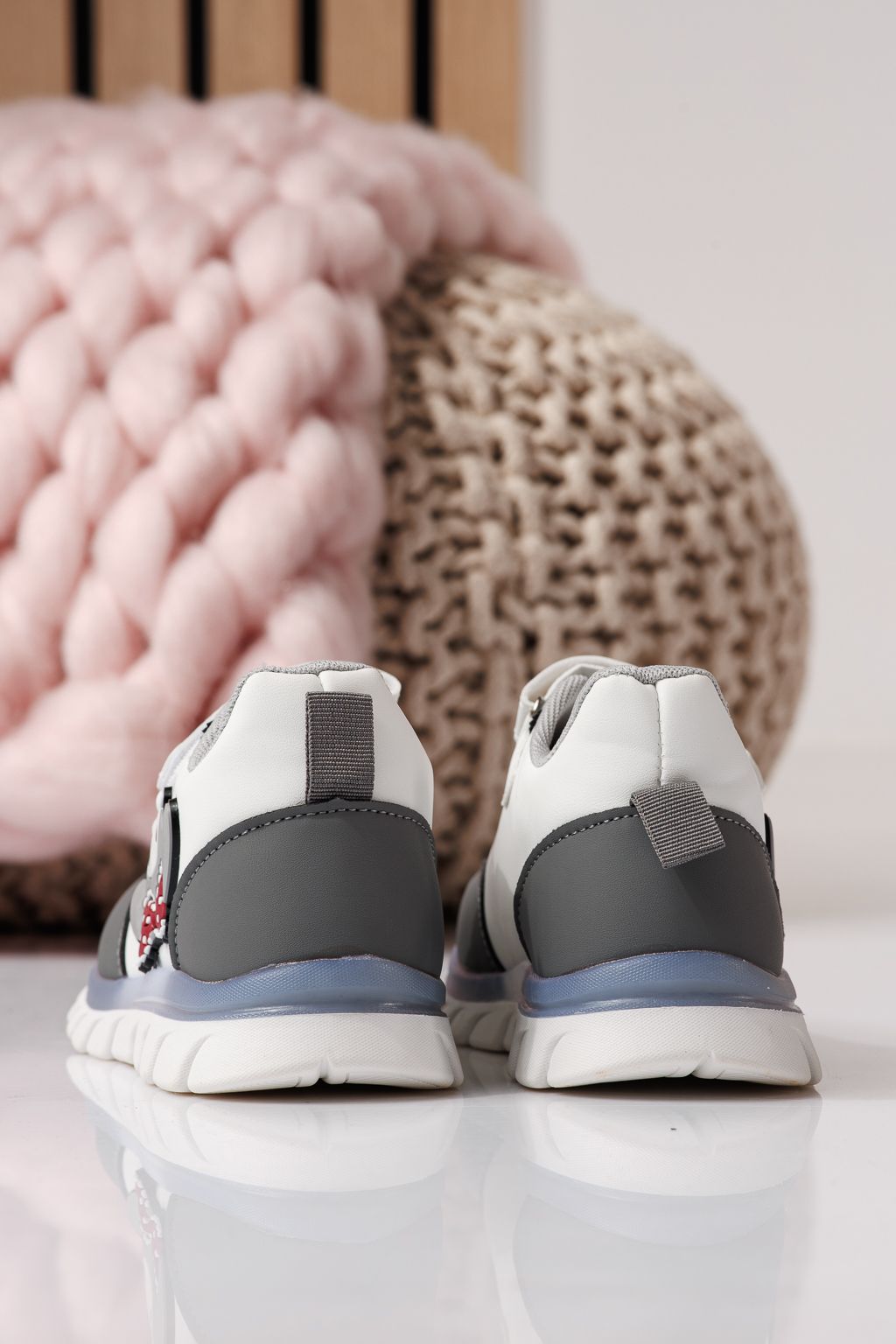 Adidasi copii gri din piele ecologica Luna #24331