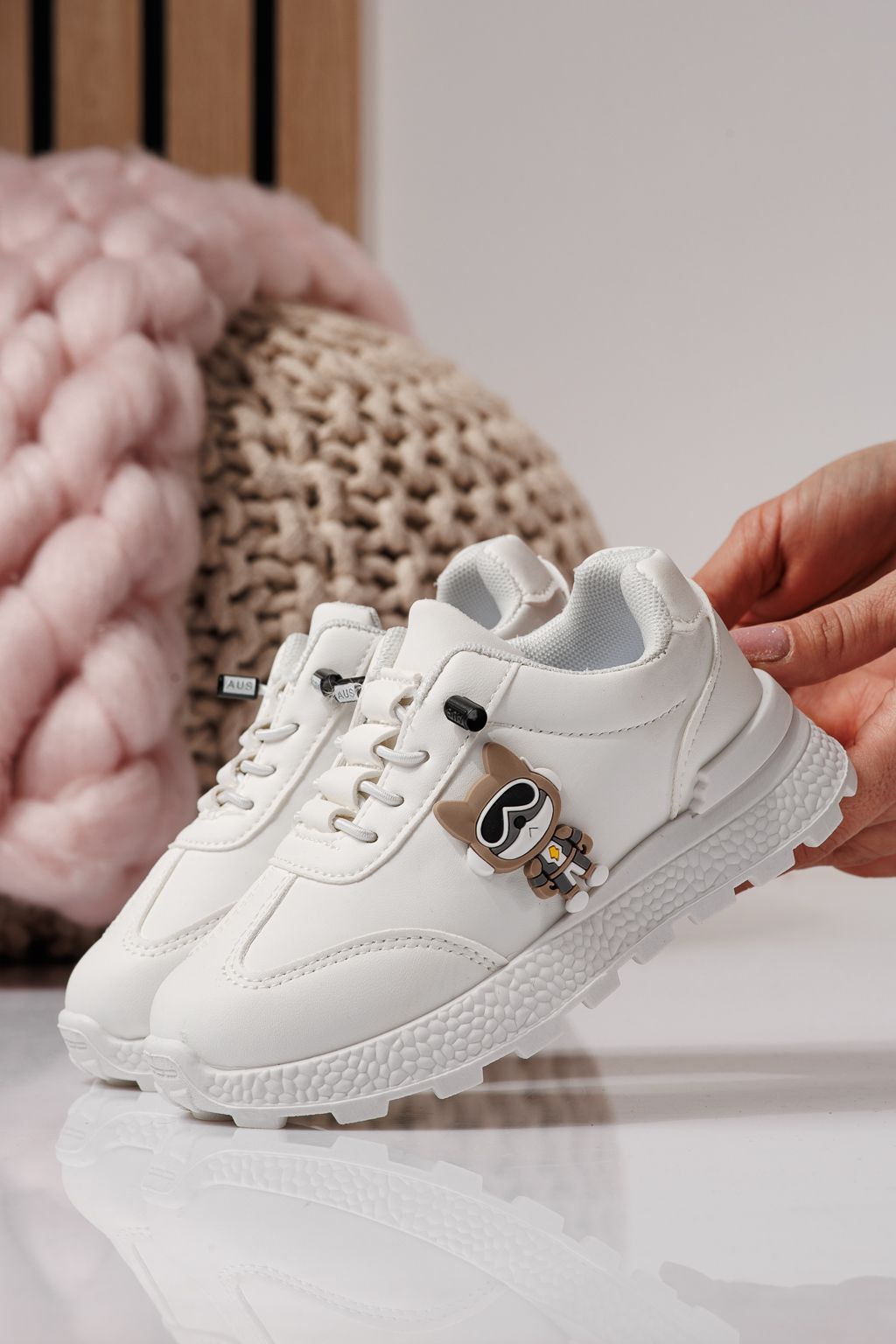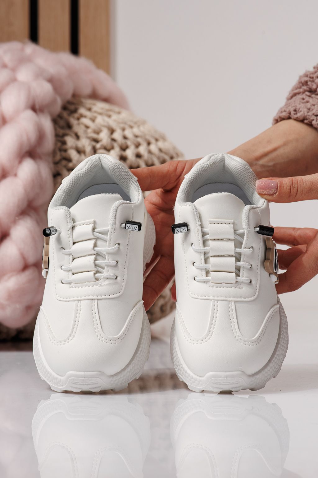 Adidasi copii albi din piele ecologica Ana #24381