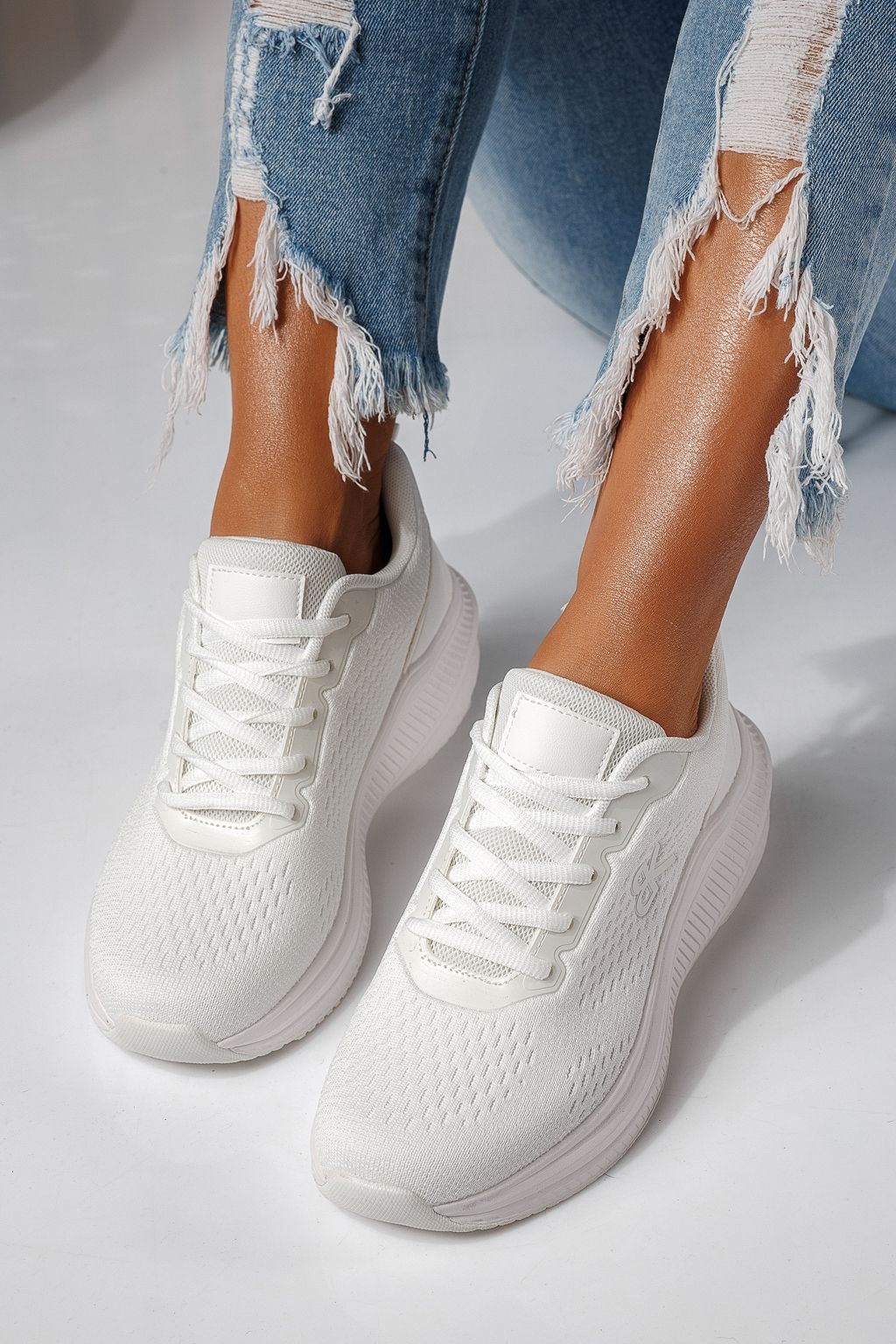 Adidasi dama albi din material textil Anaiss #24387