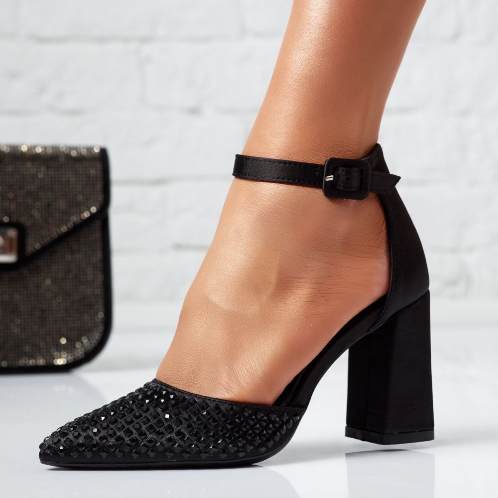 Prima pagină Incaltaminte dama Pantofi Dama Pantofi Cu Toc Pantofi cu toc dama negri din satin Iulia #24445