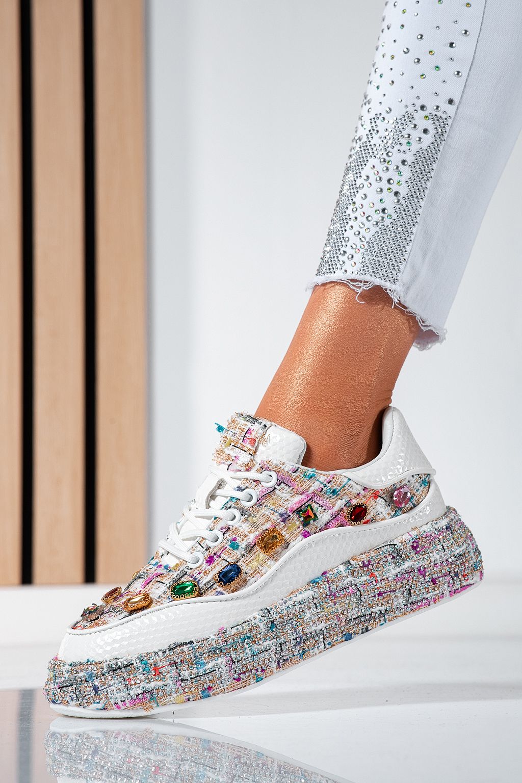 Adidasi dama albi din piele ecologica Eda #24532