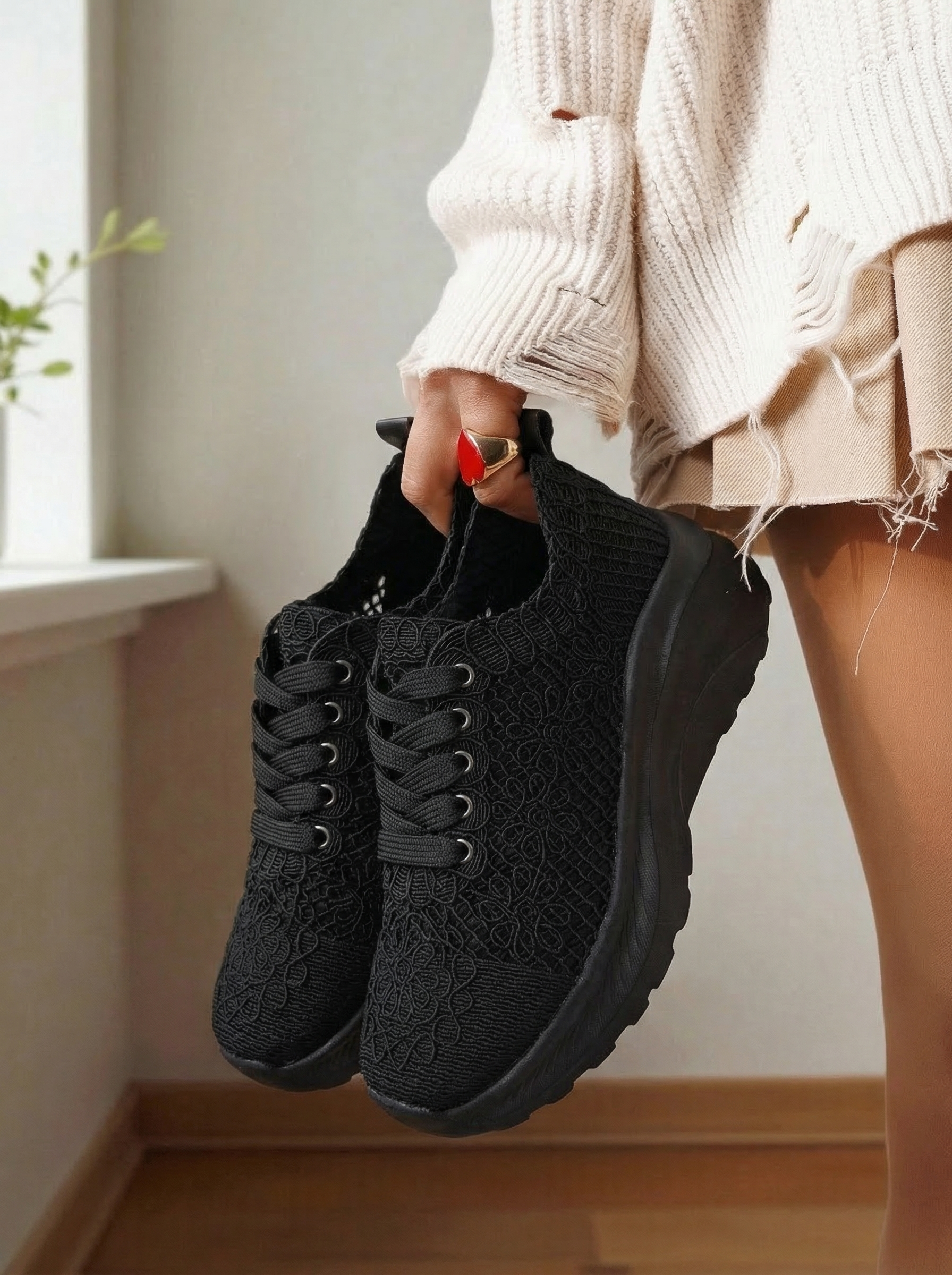 Adidasi dama negri din material textil Yuri #24656